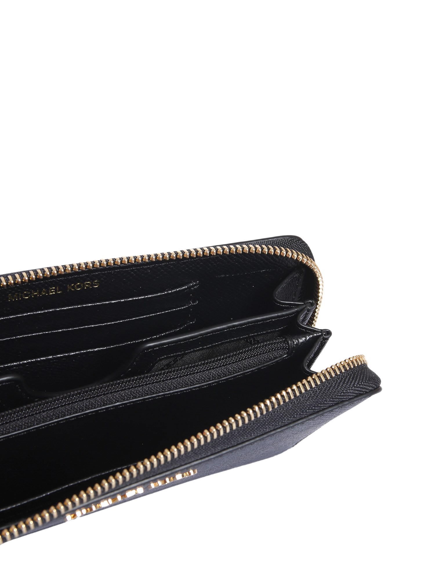 Suit up and pair this jet set travel wallet by Michael Kors. The leather material of this wallet offers it a clean and smooth finish. The wallet comes with logo on the front that makes it look stylish and trendy. The three credit card compartments secures your debit and credit cards.
