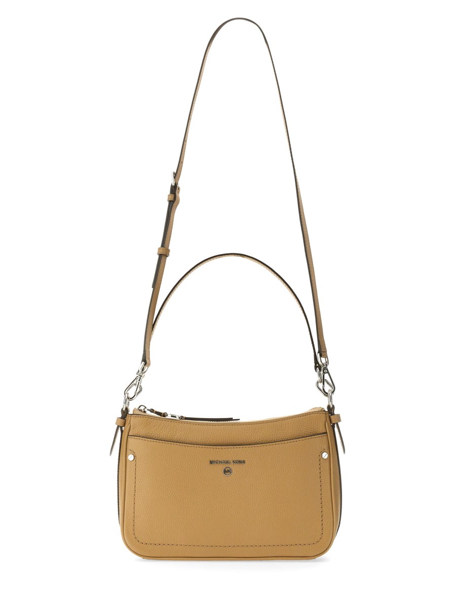 The grained leather bag from Michael by Michael Kors is crafted from an Italian grained leather with a zipper closure front logo. The styling is sleek and sophisticated, but the detailing is what makes this bag stand out. This is a modern and chic bag that is perfect for those who need a simple and stylish bag for everyday use