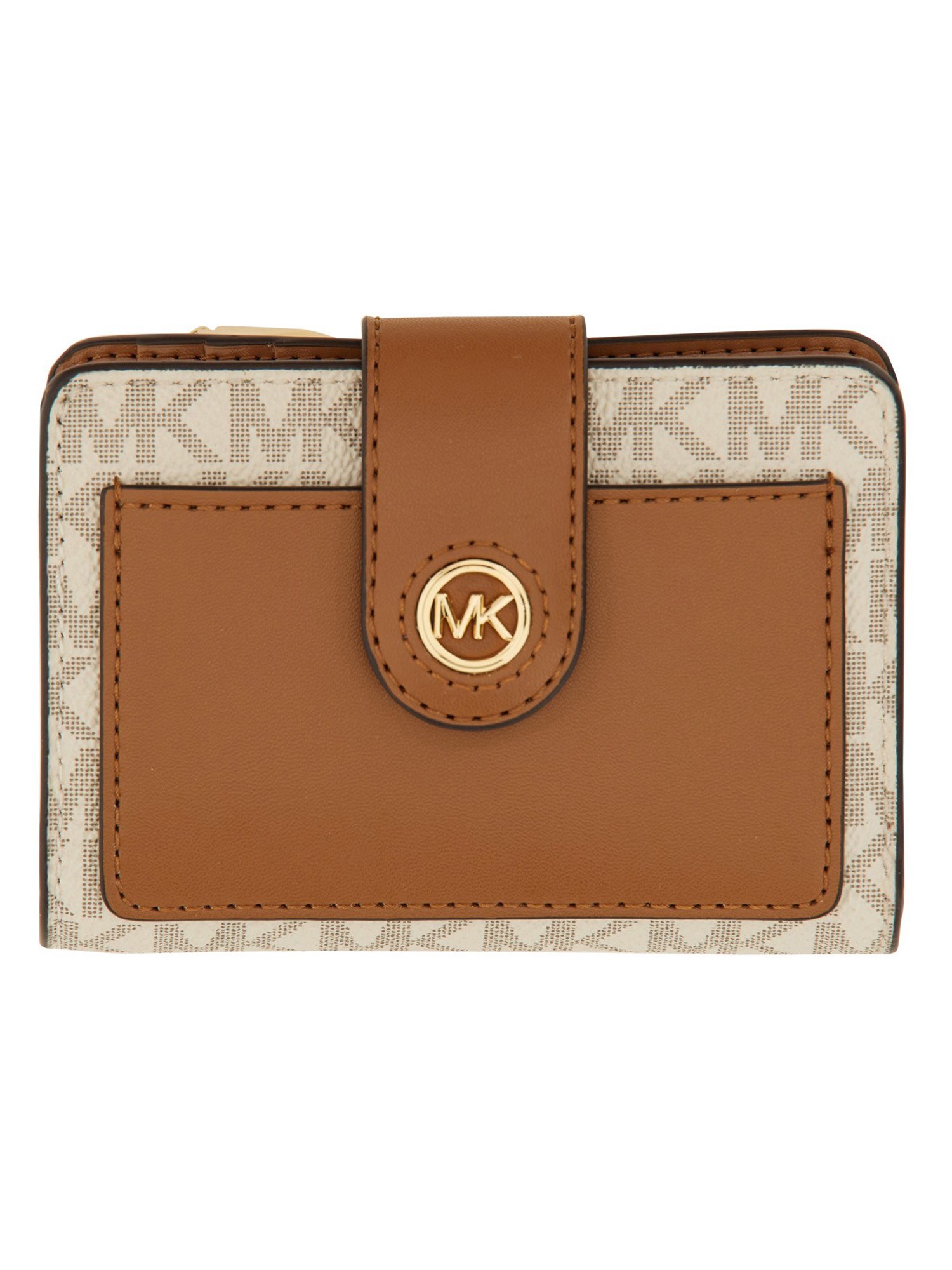 The Michael by Michael Kors wallet features a sophisticated design adorned with the iconic logo, making it a stylish accessory for any occasion. Crafted from high-quality materials, this wallet offers durability and elegance, while its well-organized interior provides ample space for cards, cash, and coins. Ideal for those who appreciate luxury and functionality, this wallet seamlessly combines practicality with a chic aesthetic.