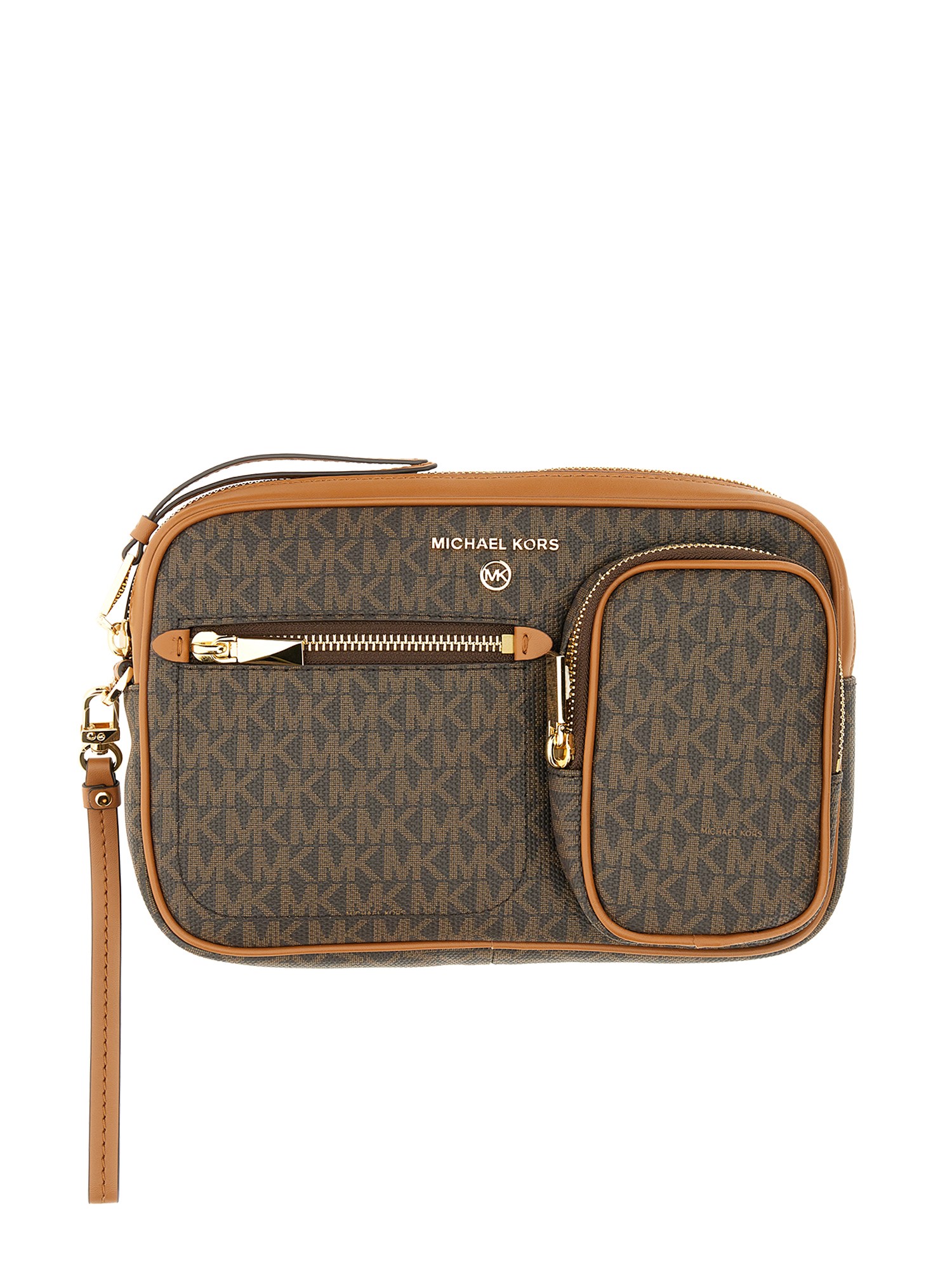 - ZIP CLOSURE- MONOGRAM MOTIF- FRONT LOGO- GOLD FINISH METAL ACCESSORIES- WRIST STRAP- DIMENSIONS: H 15 CM X W 23 CM X D 4.5- 100% CALFSKIN LEATHER