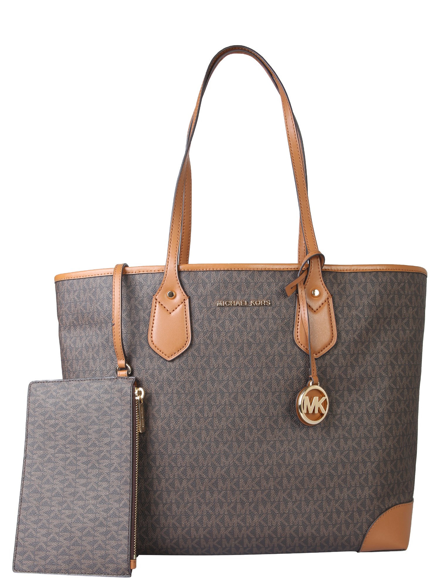 Carry your everyday essentials in a stylish way using this large Eva tote bag from Michael By Michael Kors. The bag has a logoed surface with a leather overlay to add durability to its design. It comes with a removable clutch to keep your cards and cash in an organised manner.
