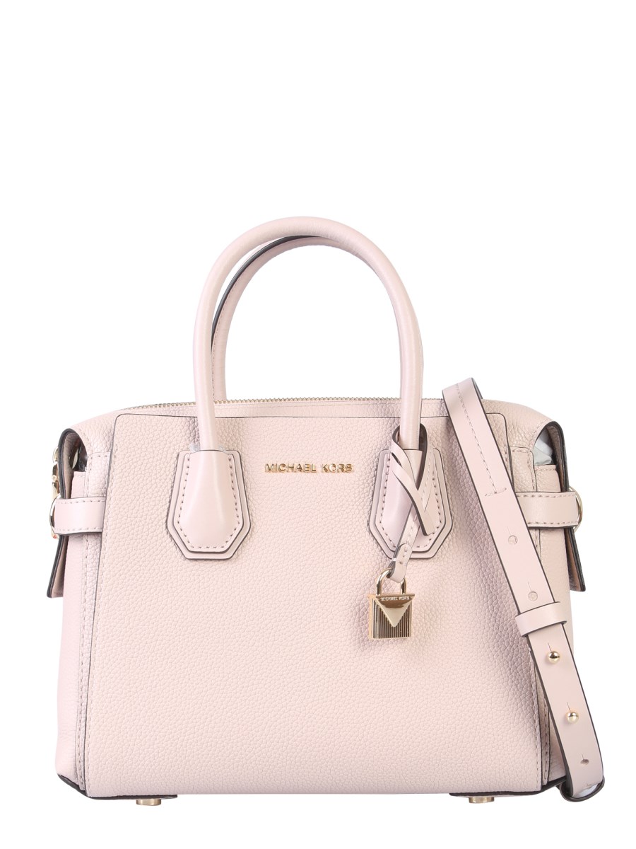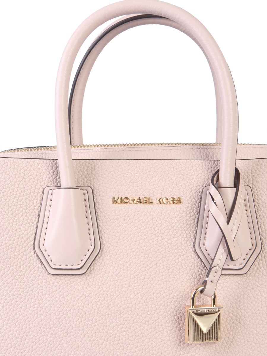 Carry this chic and elegantly designed Mercer leather bag from Michael Kors to your next get together and make everyone turn heads with awe. Crafted with 100% calf leather material, this bag is given in an attractive pink colour. The zip closure, along with an adjustable shoulder strap, makes a functional piece of accessory.