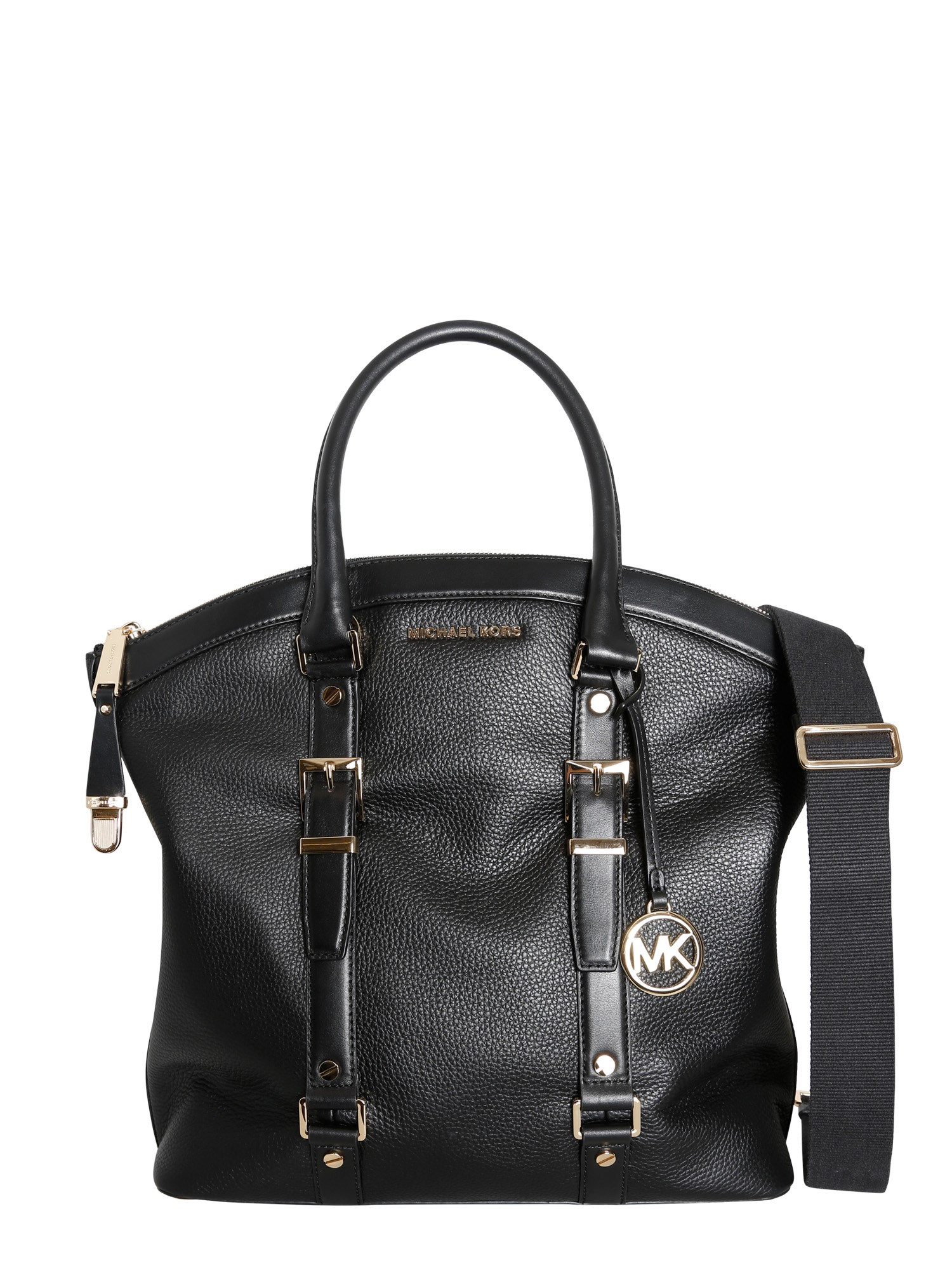 Accessories from Michael by Michael Kors are popular for their exclusive design and strength, and this one from their collection is the perfect example of both the features. It has a complete leather construction with a lined inner for maximum durability. As for the design, the front of this bag is adorned with faux buckle closures.