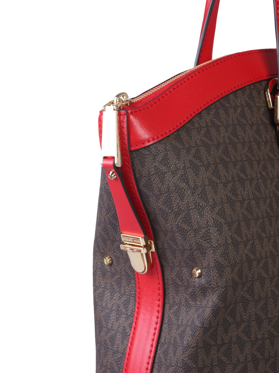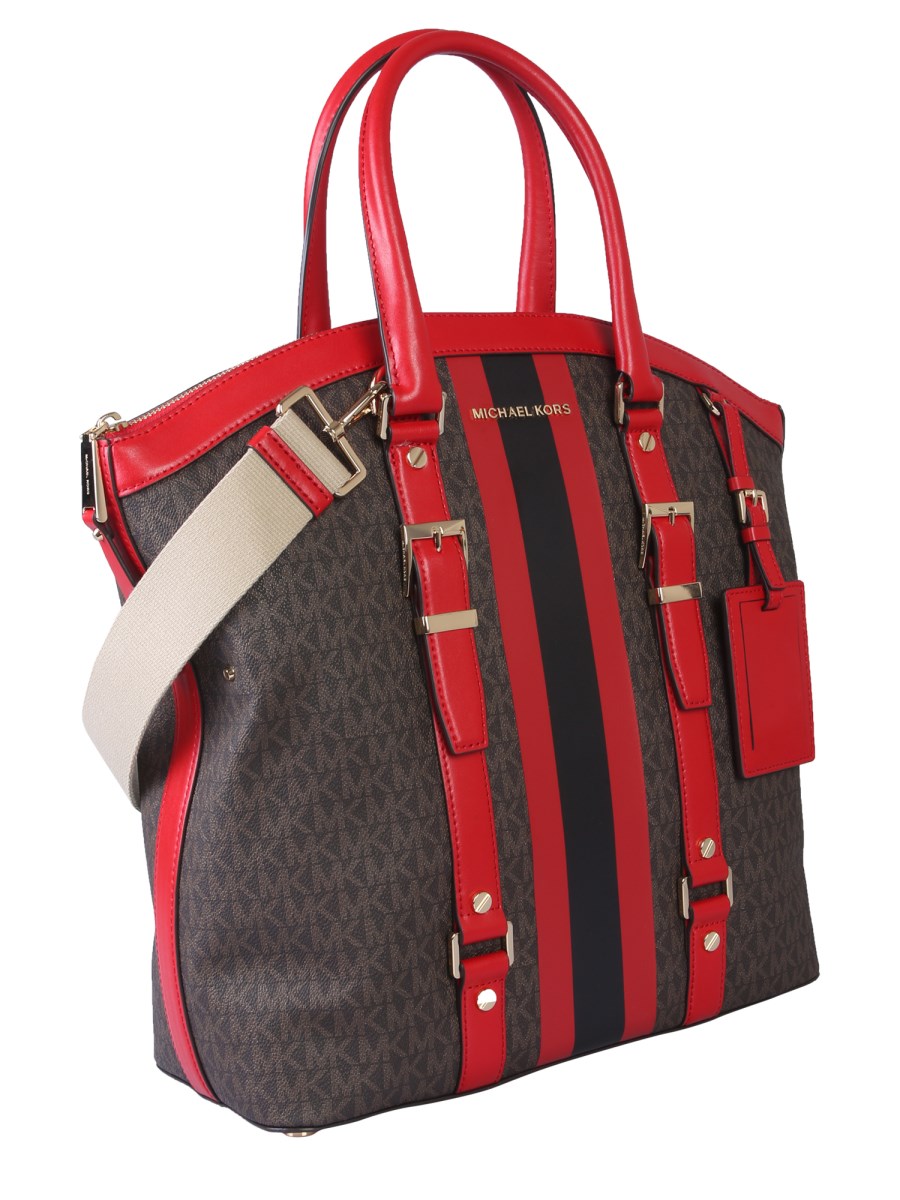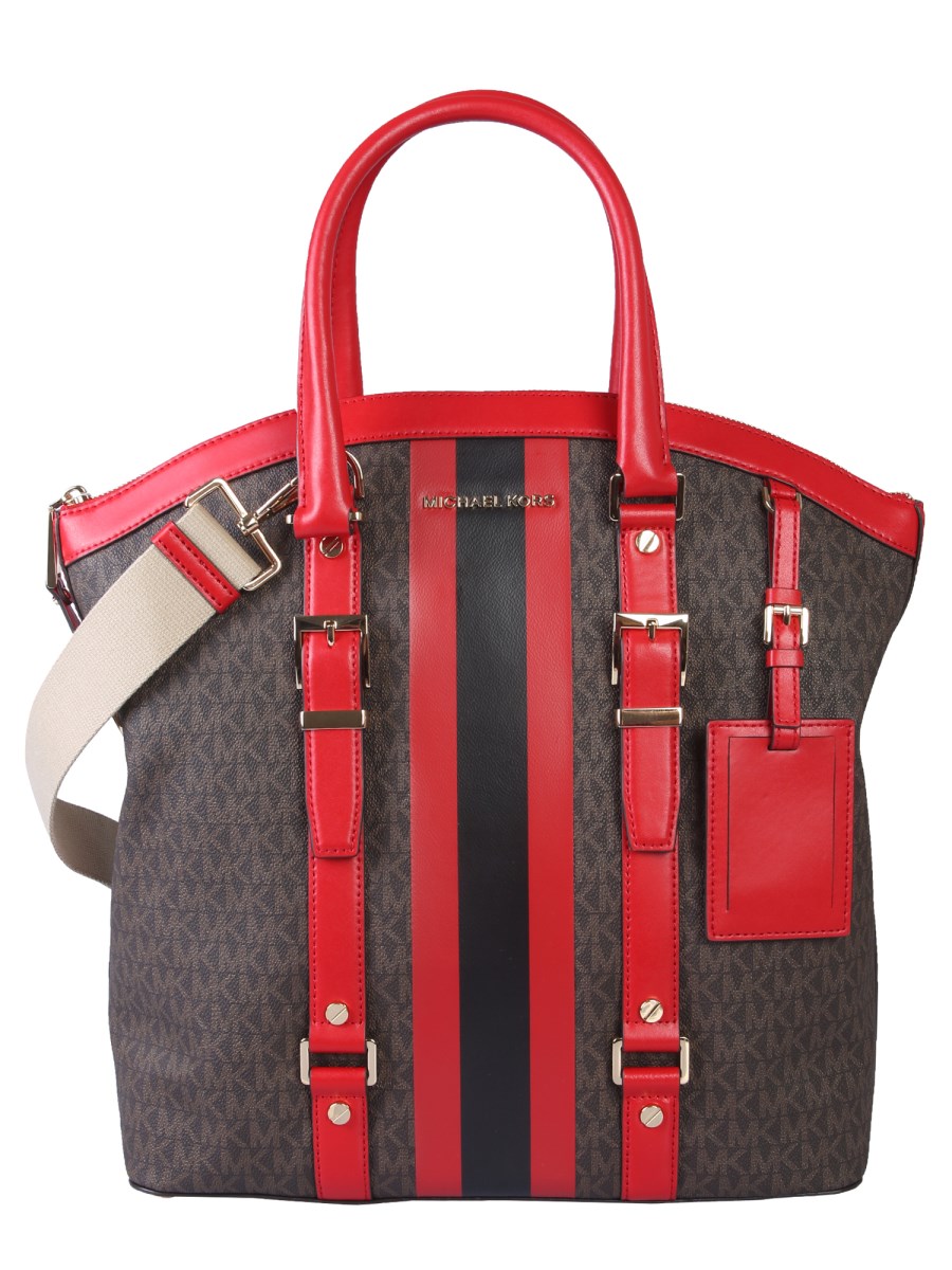 Whether you’re travelling abroad or just going for a sleepover, this bedford travel bag from Michael By Michael Kors is a versatile option to go for. Made of a mix of PVC, leather, polyester and cotton, the bag is durable, washable and easy to maintain. Its logoed surface is accented with contrasting stripes and lettered logo.