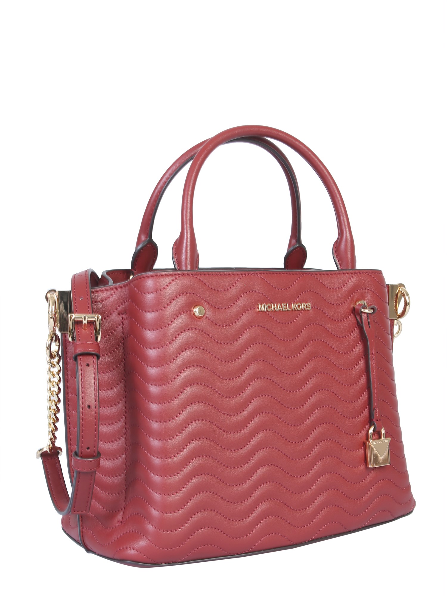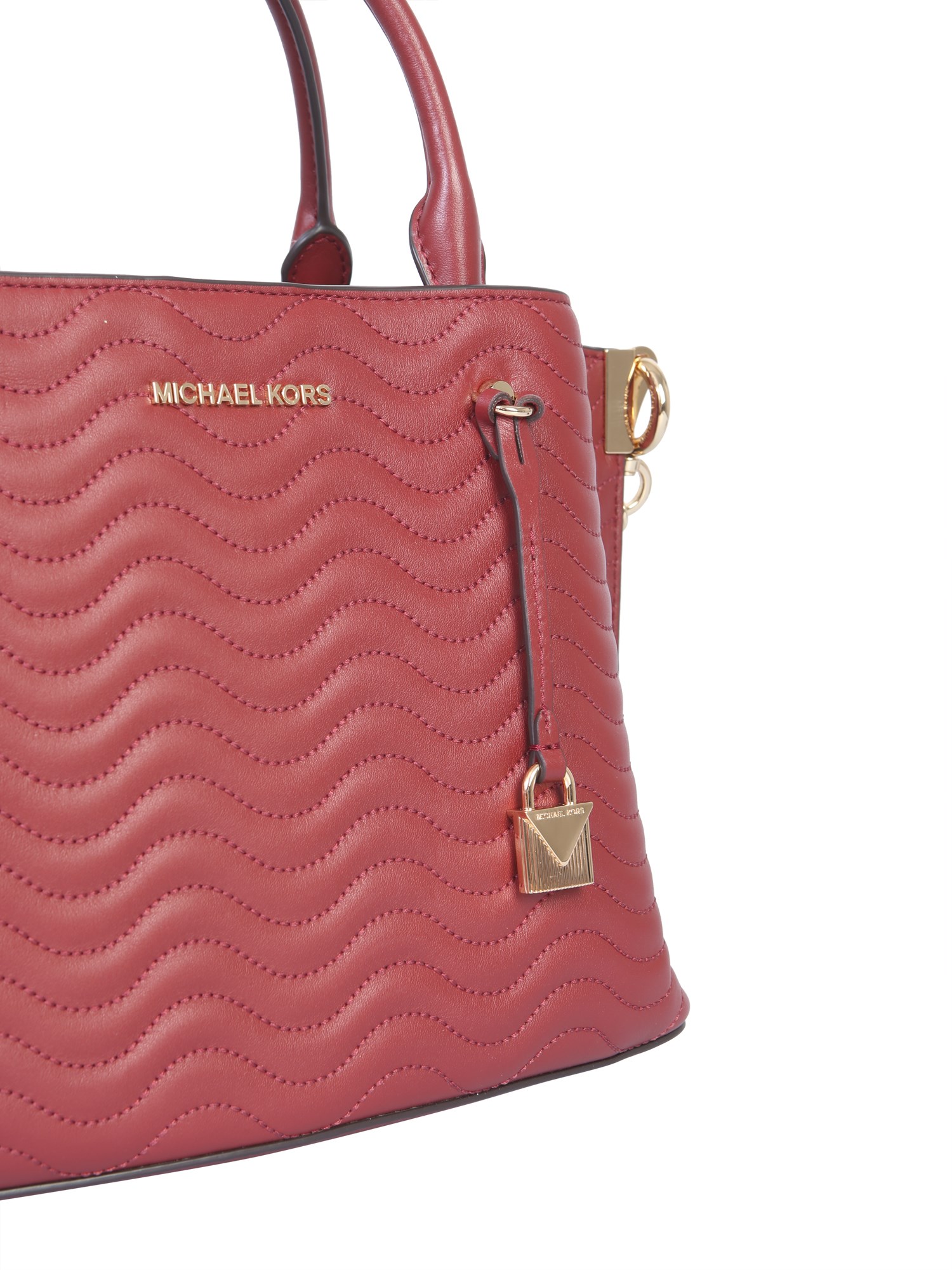 Spacious and fashionable, this "arielle" bag from Michael By Michael Kors is a polished option for every day or an evening out. It has a quilted surface with visible seams which is further accented with shiny metallic studs and logo. The gold finished metallic padlock accent refines its classy look.