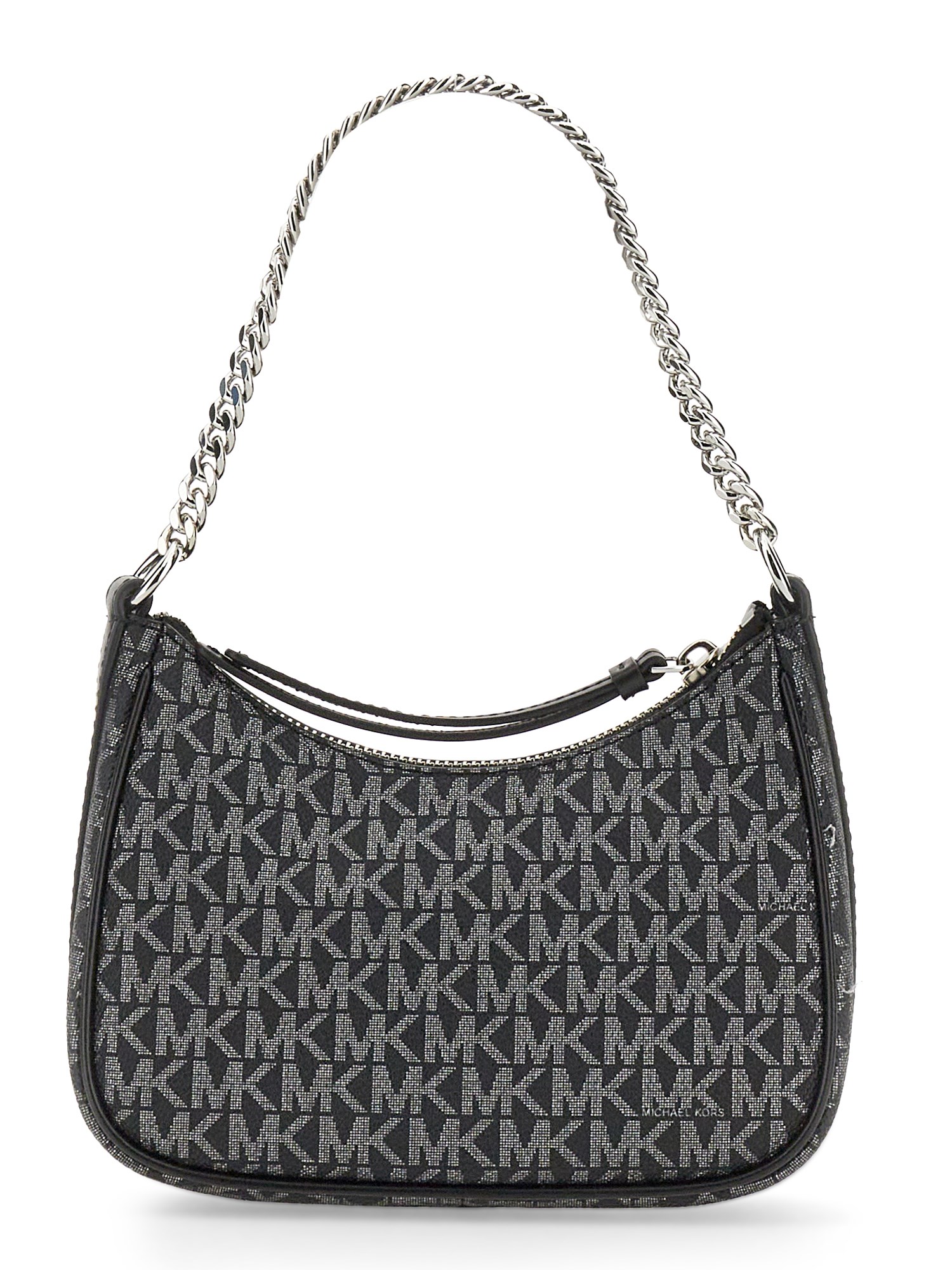 Effortlessly chic and chicly effortless, this beautifully designed shoulder bag from Michael by Michael Kors will take you from day to night. The zip closure chain top handle all-over logo motif leather pouchette shoulder bag is the perfect companion to complete your weekend wardrobe.