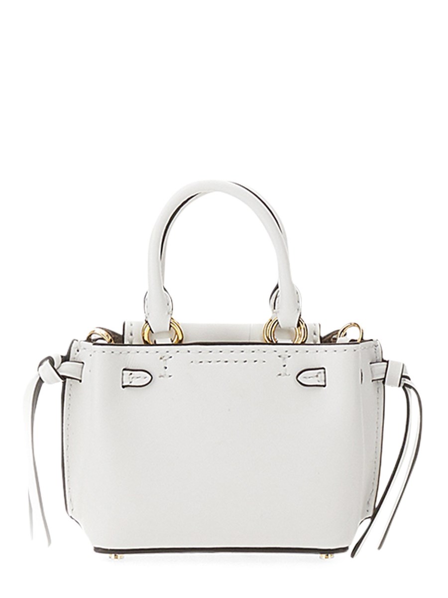 This genuine leather bag from Michael By Michael Kors is the perfect size for your daily commute and can be carried by hand or on your shoulder. It features double top handle, adjustable and removable shoulder strap, snap closure, and chain pendant with padlock.