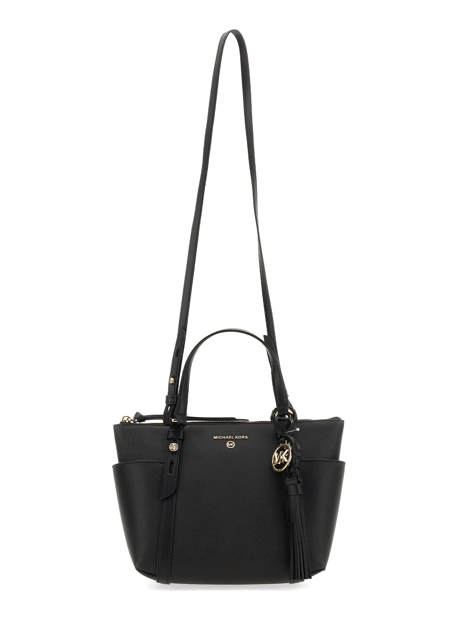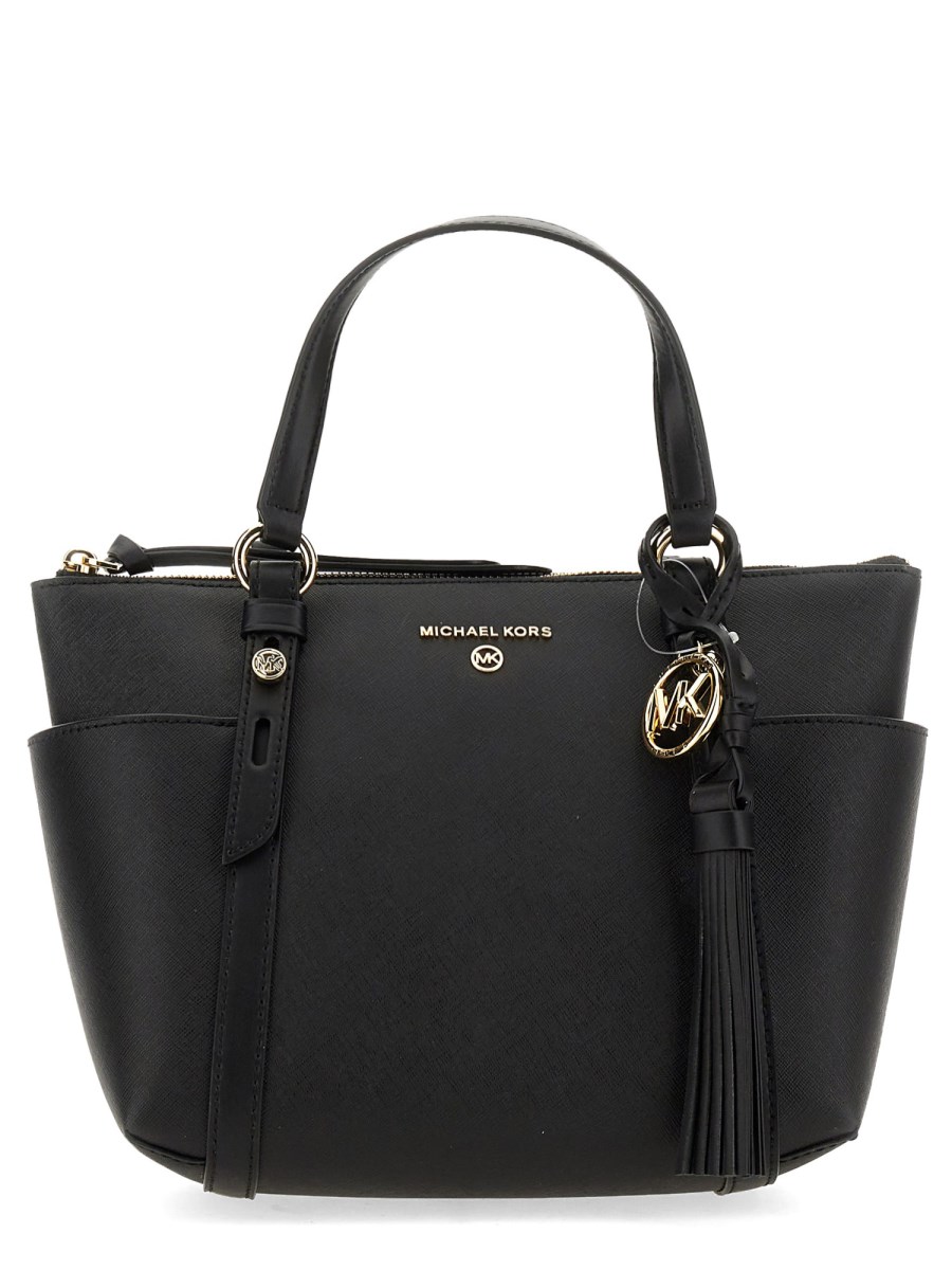 The Michael by Michael Kors "Nomad" Tote Bag features a modernised style with lovely lettering logo detailing ion the front. With the adjustable and removable shoulder strap, this bag becomes convenient to carry. It includes two outer side pockets, an inner zip pocket and an inner flat pocket. Use of genuine leather adds strength and durability to this tote bag.