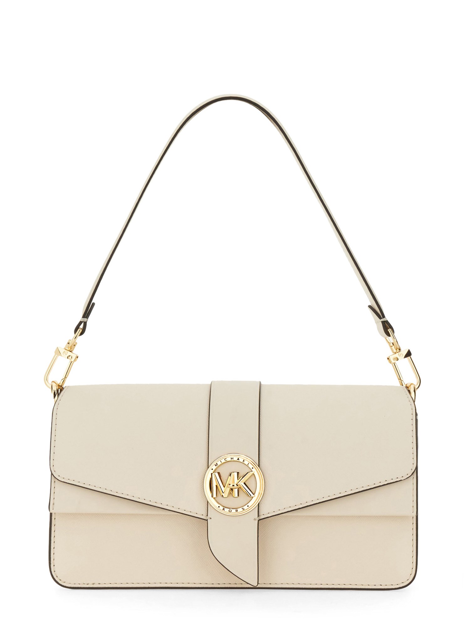 Introducing the snap hook flap closure single handle shoulder bag from Michael by Michael Kors, a stylish and functional accessory for the modern woman. This shoulder bag features a convenient snap hook flap closure, ensuring the security of your belongings while adding a touch of sophistication. The single handle design allows for easy carrying, whether you choose to wear it on your shoulder or carry it by hand. With its sleek and timeless design, this shoulder bag effortlessly combines fashion and functionality, making it the perfect companion for any occasion.