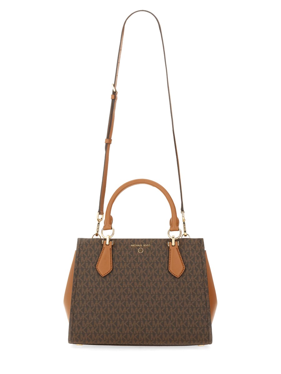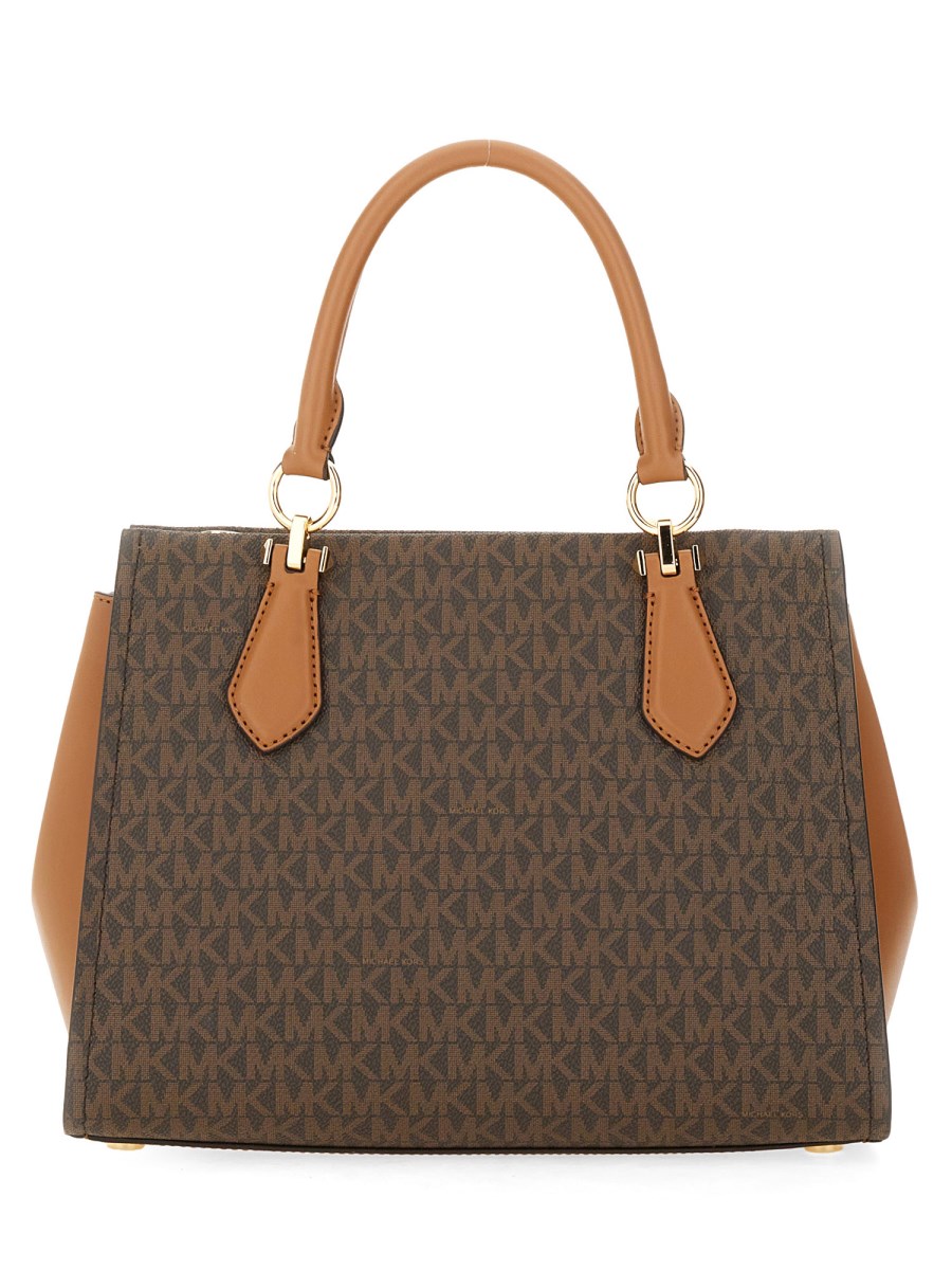 The "Marilyn" bag from Michael by Michael Kors exemplifies modern elegance and functionality, crafted from high-quality materials that ensure durability and style. Its sleek silhouette is complemented by sophisticated hardware, making it a versatile accessory for both casual and formal occasions. The spacious interior features multiple compartments, providing ample room for essentials while maintaining an organized appearance. With its chic design and signature branding, the "Marilyn" bag is a must-have addition to any fashion-forward wardrobe.