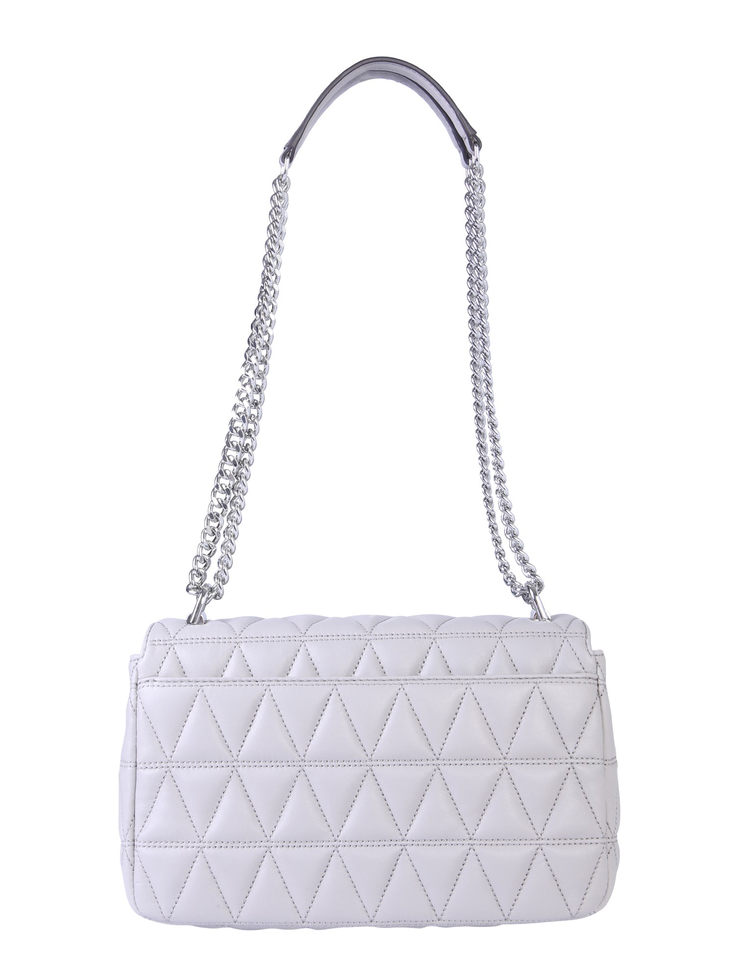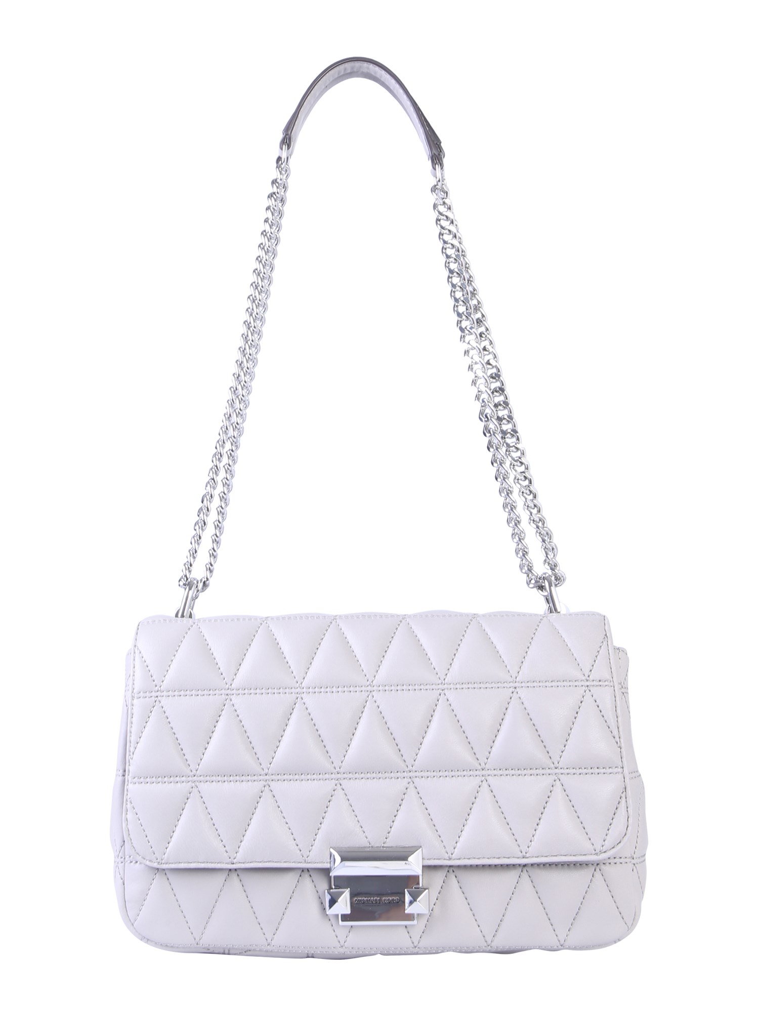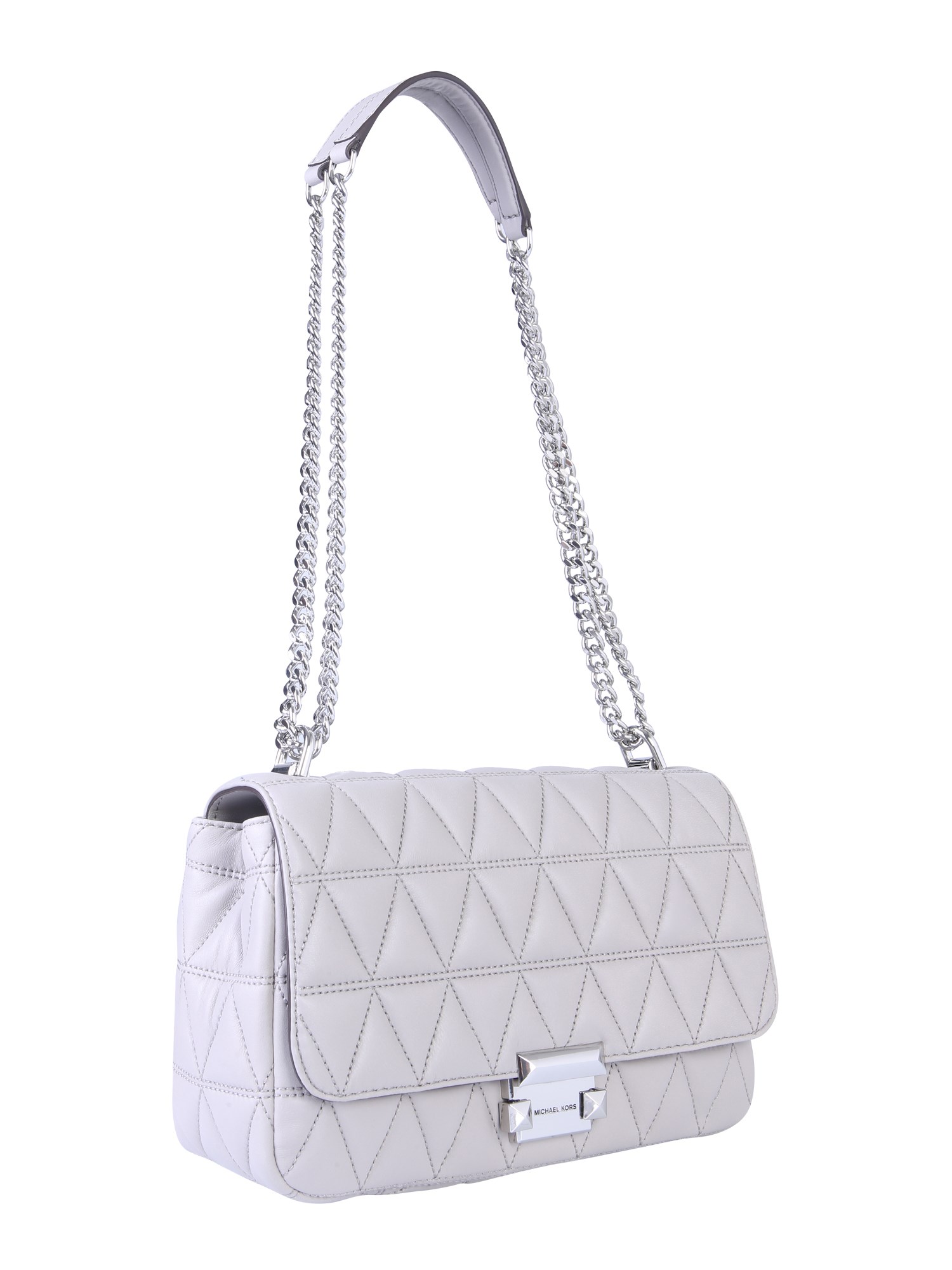 Complete your party attire with this charming and attractive large Sloan messenger bag from Michael By Michael Kors. The bag is made from fine quality leather that makes it durable. The popular quilted pattern on the front adds a glamorous touch to its design. Its spacious interior is secured with a snap closure. You can carry this bag efficiently with the chain shoulder strap.
