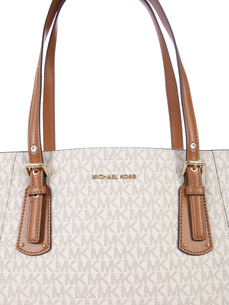 This leather tote from Michael by Michael Kors is a beautiful, versatile piece. It is made with top-quality leather, and the double handles are perfect for carrying or carrying over the shoulder. It is also large enough to hold a laptop or other essentials. This bag has a sturdy base that will last you a long time.