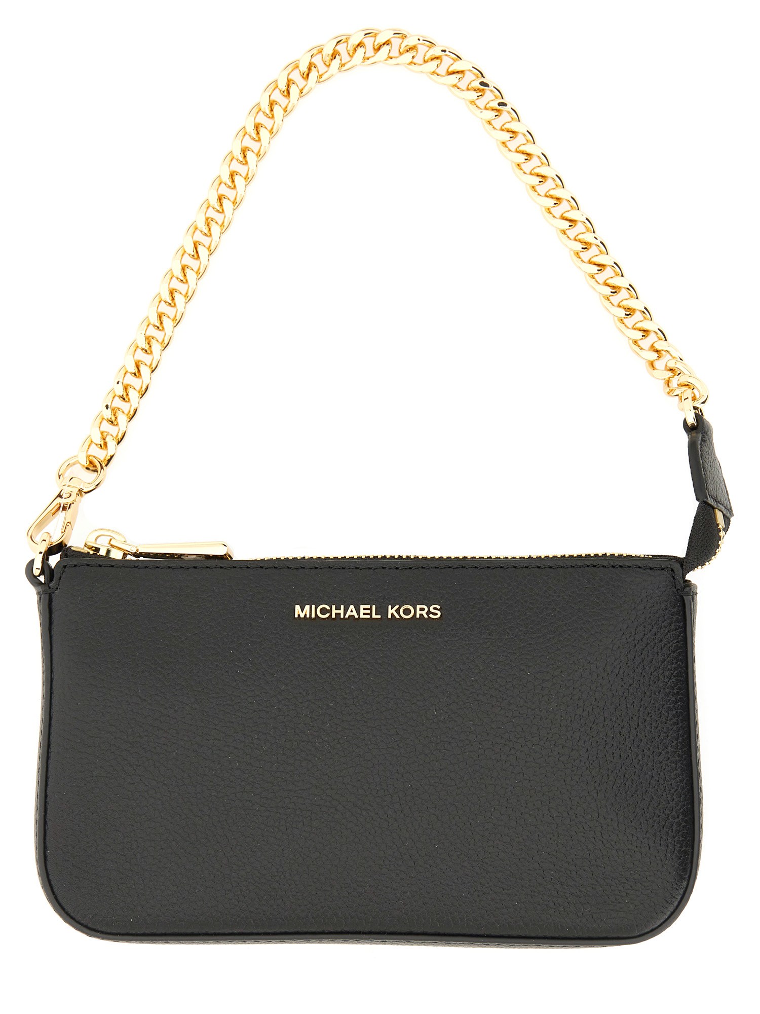 LEATHER JET SET CLUTCH WITH CHAIN HANDLE