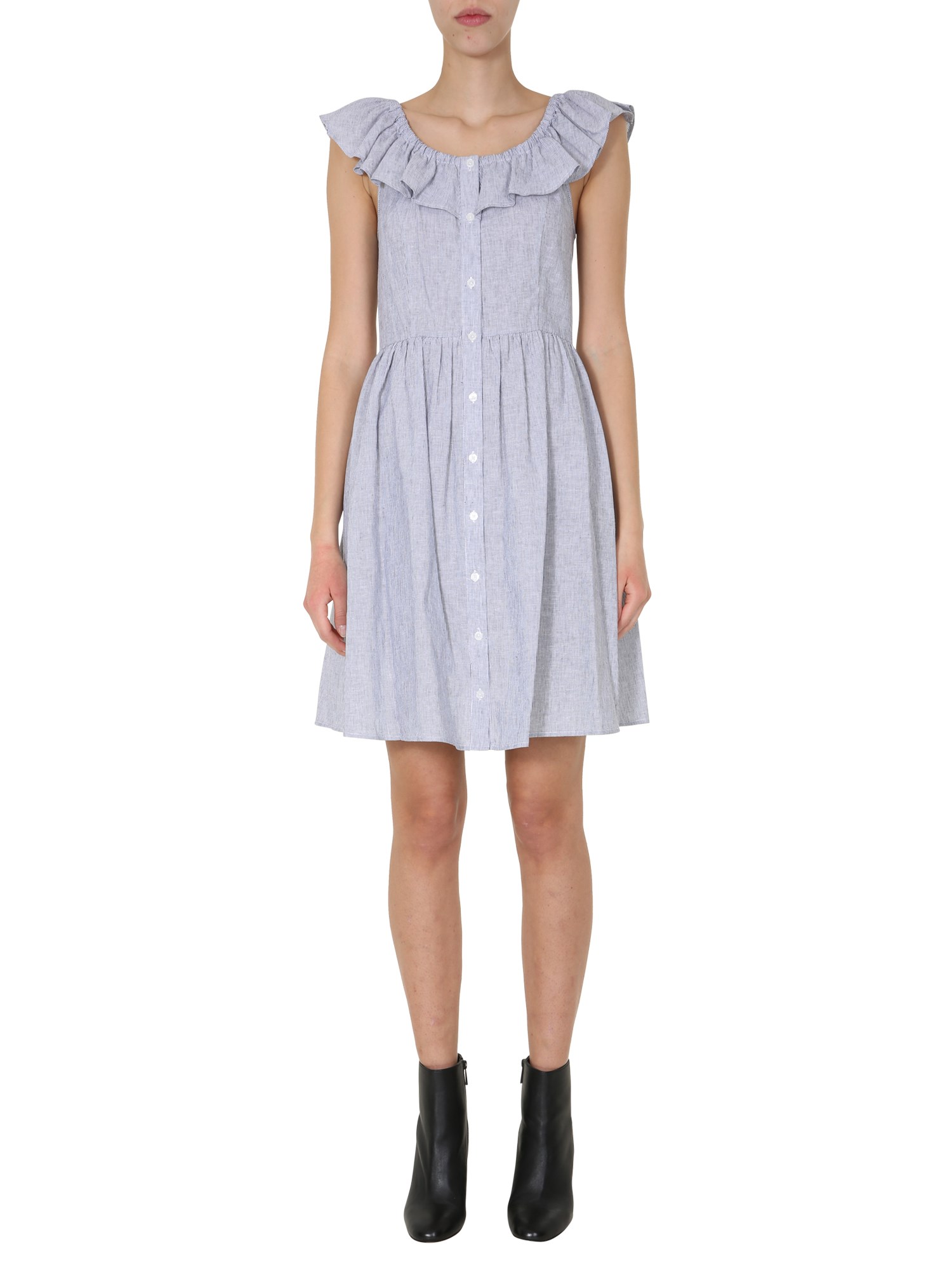 Gather compliments no matter where you go in this super cute and fancy midi dress from Michael by Michael Kors. Made of cotton and linen blended fabric, it is sure to keep you comfy and cosy. The all over striped surface is the best charming touch you’ll ever see. The dress is flowy and lightweight and all you need is a pair of heels to go with it.