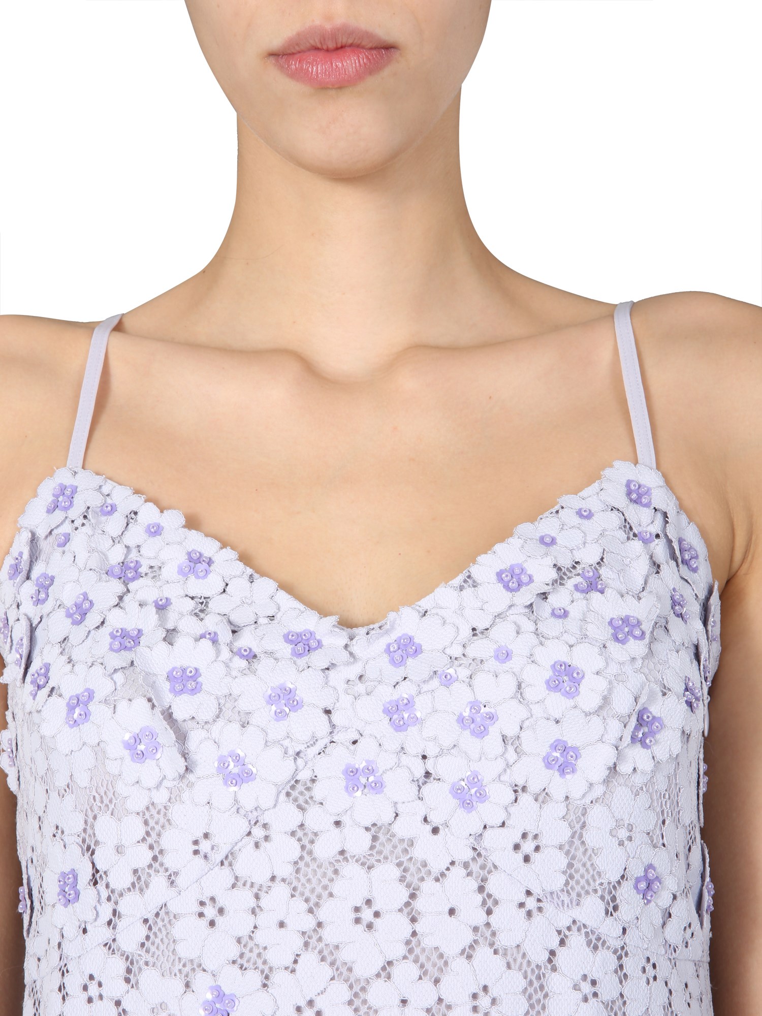 Show the world your inner diva styling sense with this glamorous lace dress from Michael By Michael Kors. This creased lace dress has embroidered beads and sequins. The frills at the bottom finish its design stylishly. Also, its shoulder straps are adjustable. Just top it off with a beautiful pair of heels and you’re set to go.