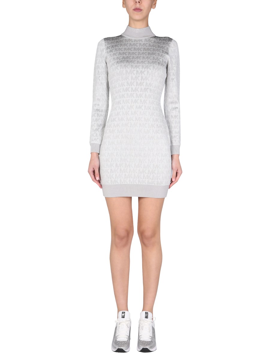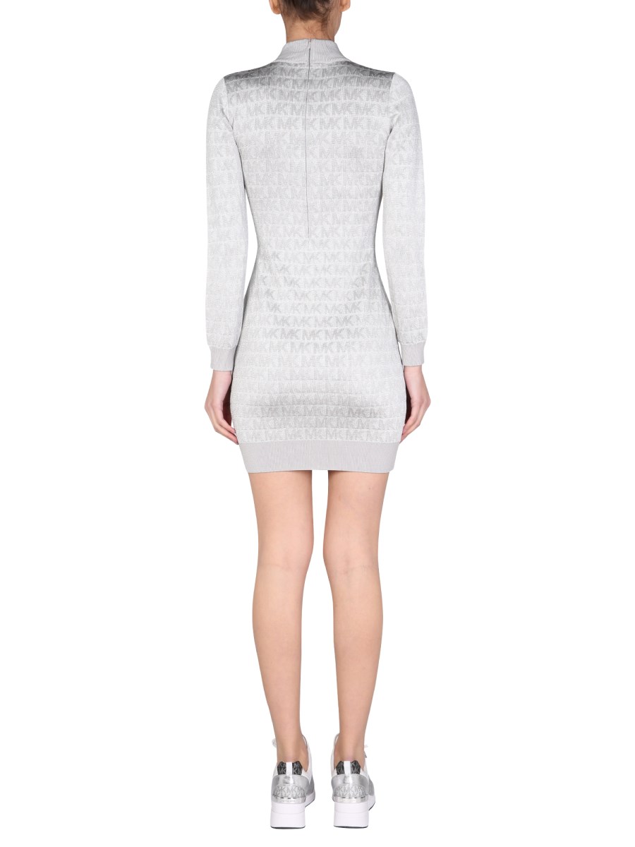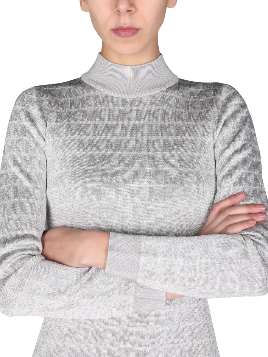 - POLO NECK- BACK ZIP CLOSURE- ALL OVER MONOGRAM LOGO- UNLINED INNER- 86% VISCOSE, 7% METAL, 6% OTHER FIBERS, 1% ELASTANE- MODEL IS 180 CM TALL AND WEARS SIZE S