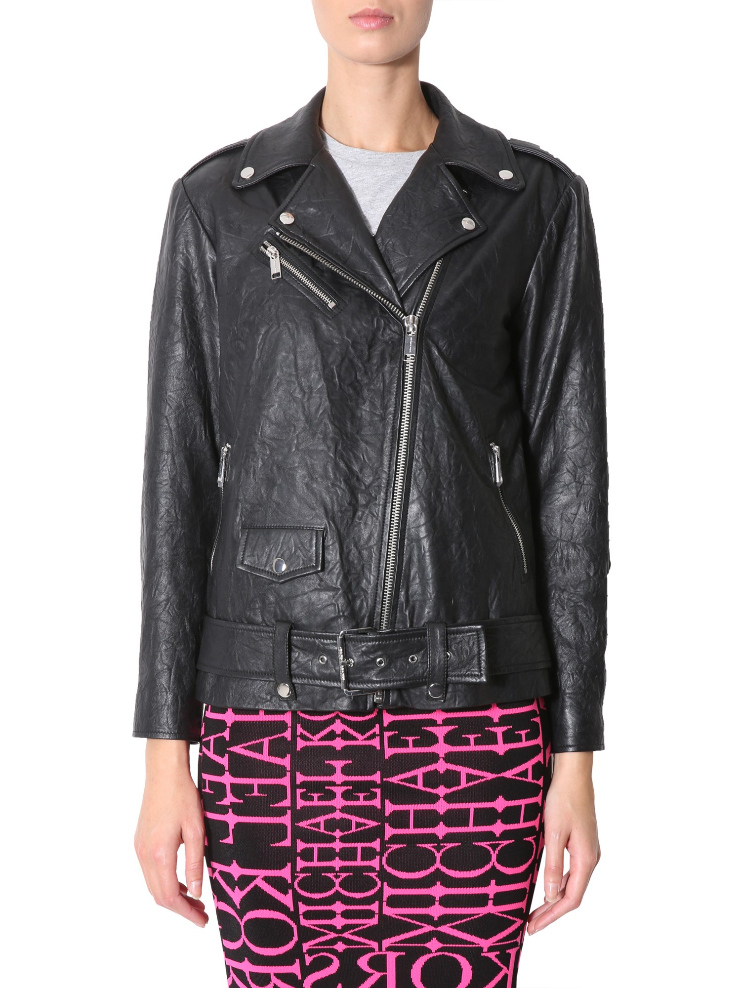 Acquire a stylish and trendy look by wearing this biker jacket from the collection of Michael by Michael Kors. The jacket is crafted from genuine leather that makes it ideal for everyday use. It features a zip closure with multiple pockets for functionality. You can pair this jacket with leather boots to create a classy ensemble.