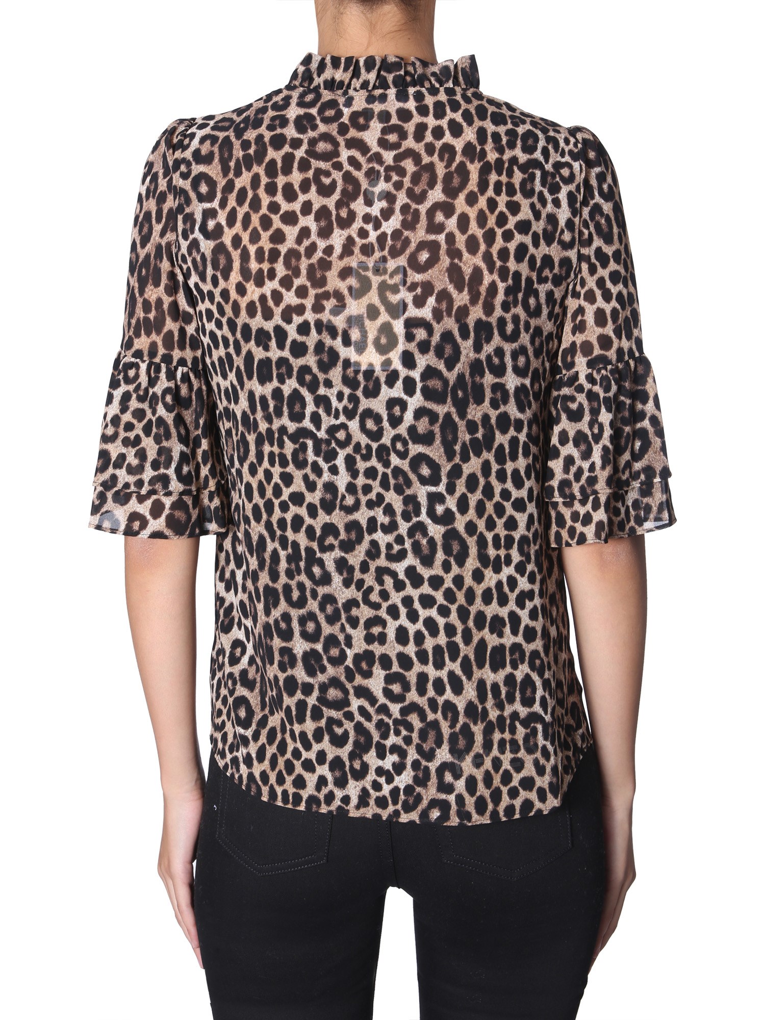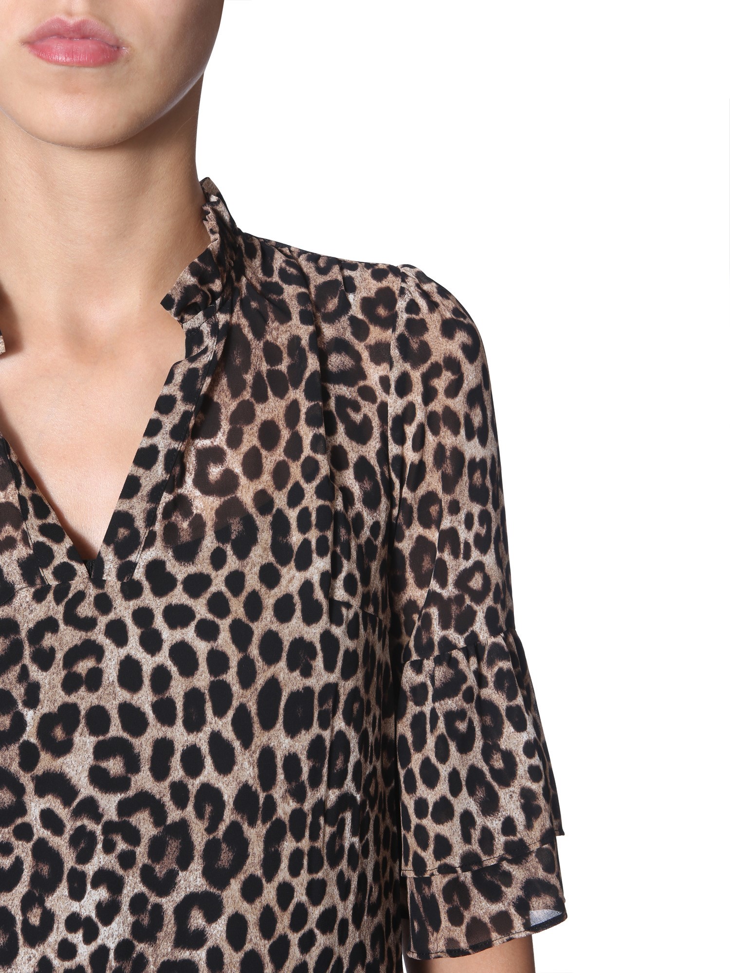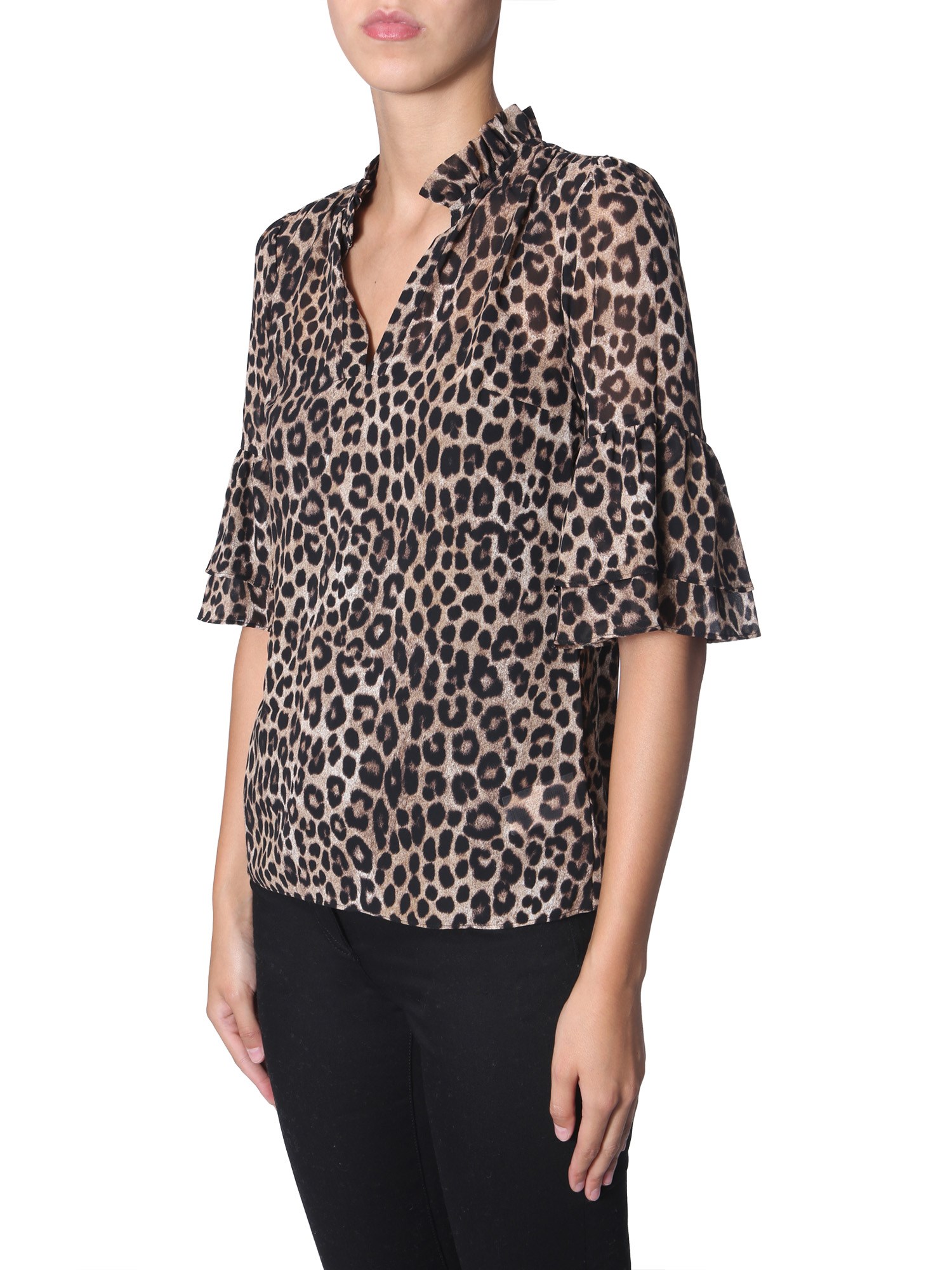From casual parties to official meetings, this top with ruches from Michael by Michael Kors is versatile pick for your closet. Adorned with an animal printed surface, the top looks stylish and trendy. It has V-neck with ruches and frilled-sleeves that are sure to raise your style bar. Made of polyester, it is lightweight and breathable.