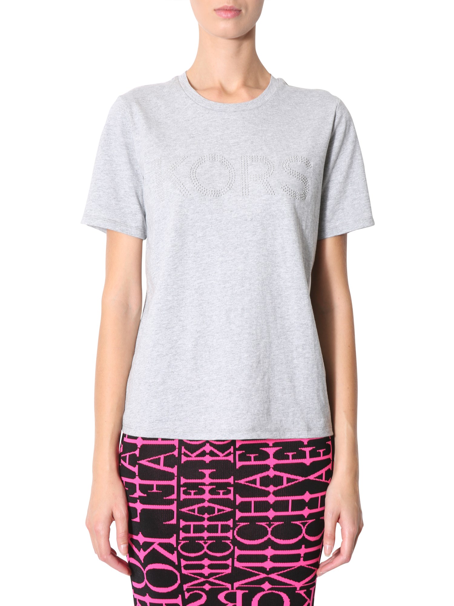 LOGO PRINTED COTTON T-SHIRT WITH STUDS