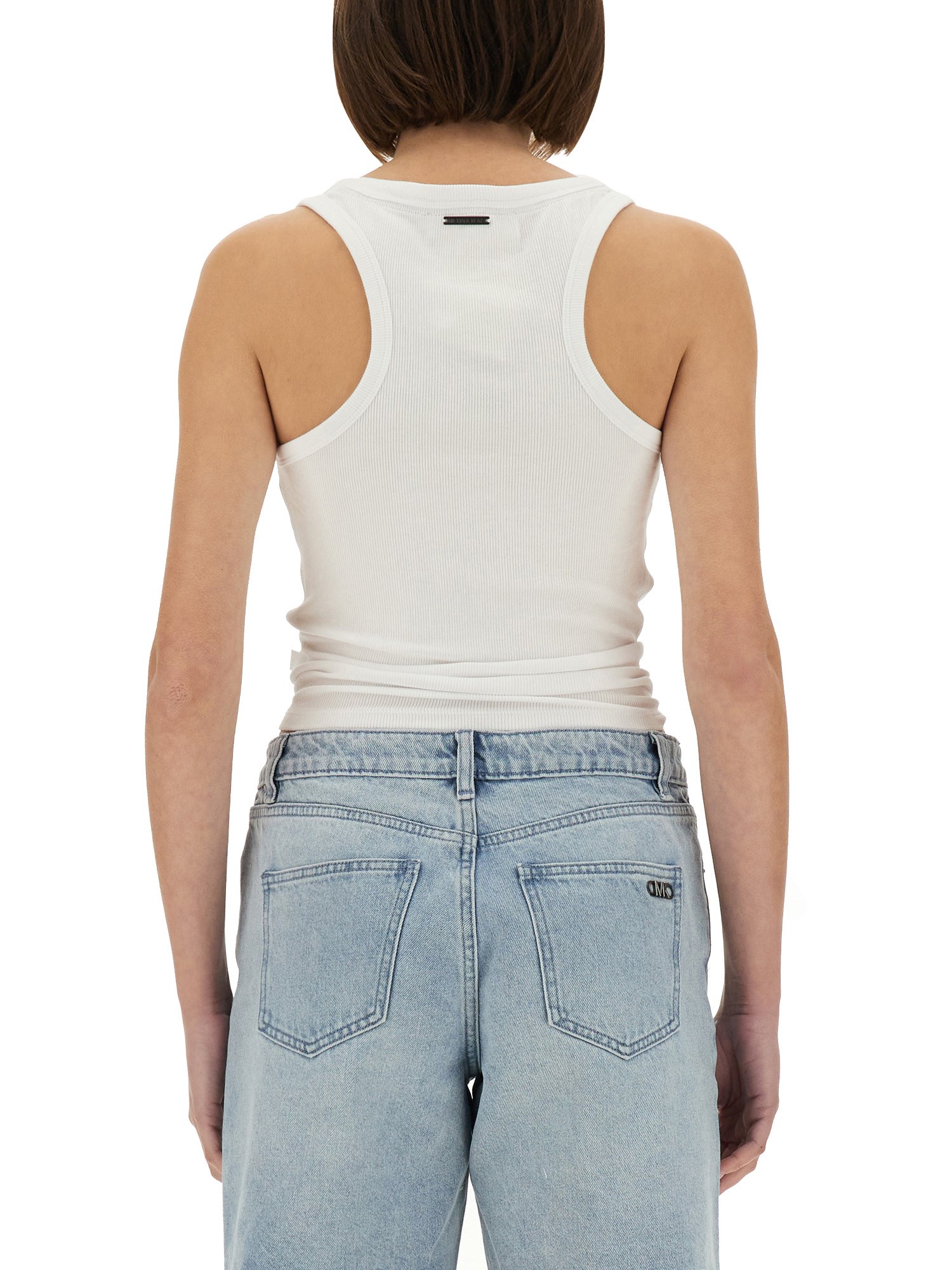 RIBBED STRETCH KNIT TANK TOP WITH LACE-UP FRONT