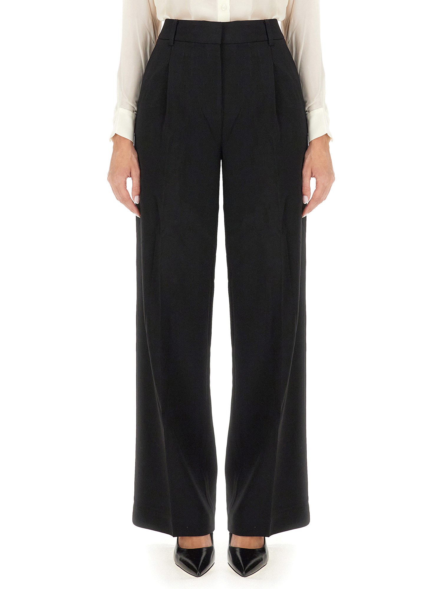 The black wide leg pants from Michael by Michael Kors are perfect for work or play. They have a wide leg design that provides comfort and a smooth silhouette. They are also made from stretch fabric for the best fit and easy movement. The wide leg design also provides a feminine flair.