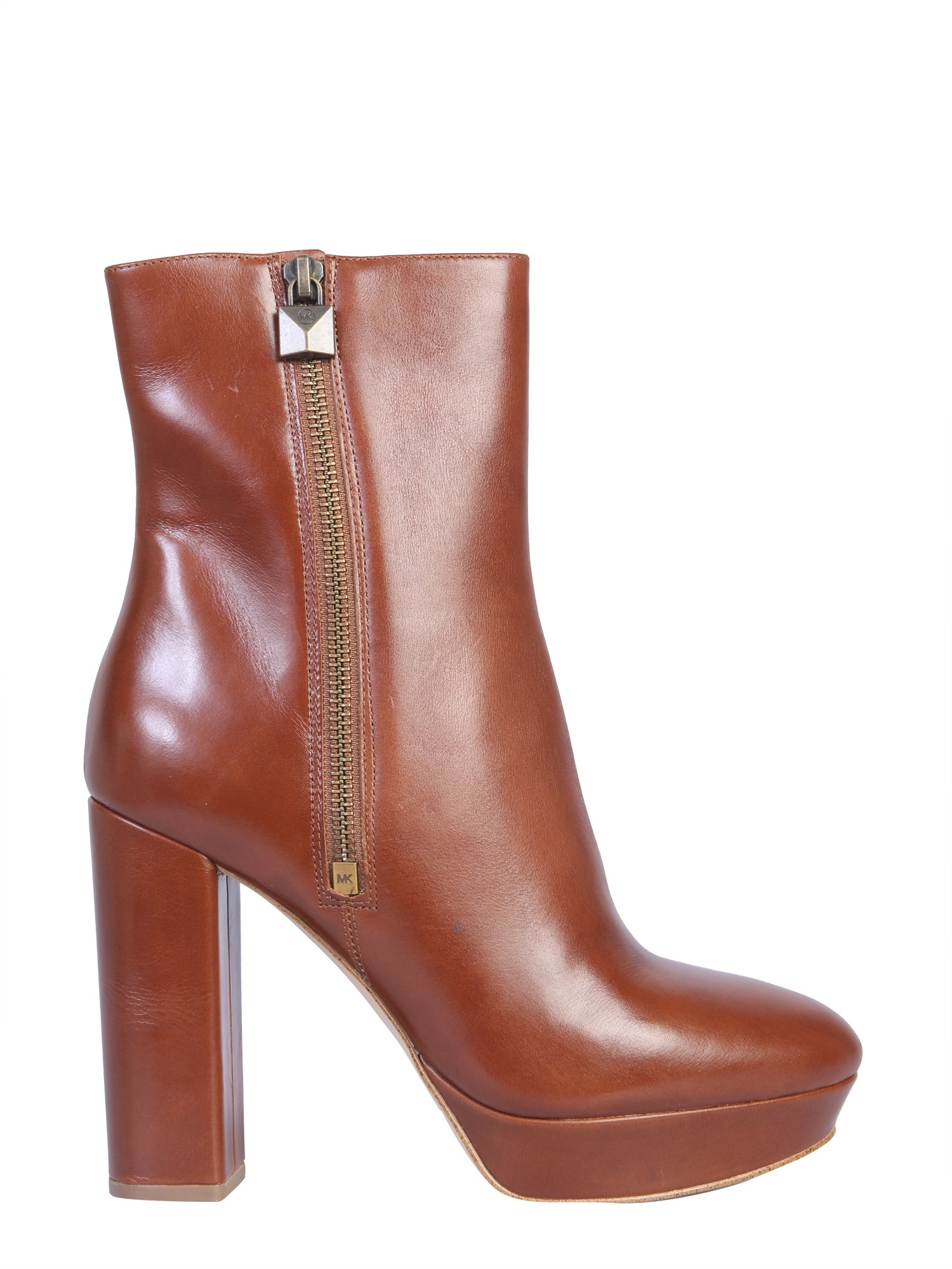 These "frenchie" boots from Michael By Michael Kors are sure to be a hit among those who are high on fashion quotient. These sophisticated boots are made of genuine leather for a lustrous finish. The 10.8cm block heels will let you walk gracefully on any surface. The side zip closure gives a proper and comfortable fit.