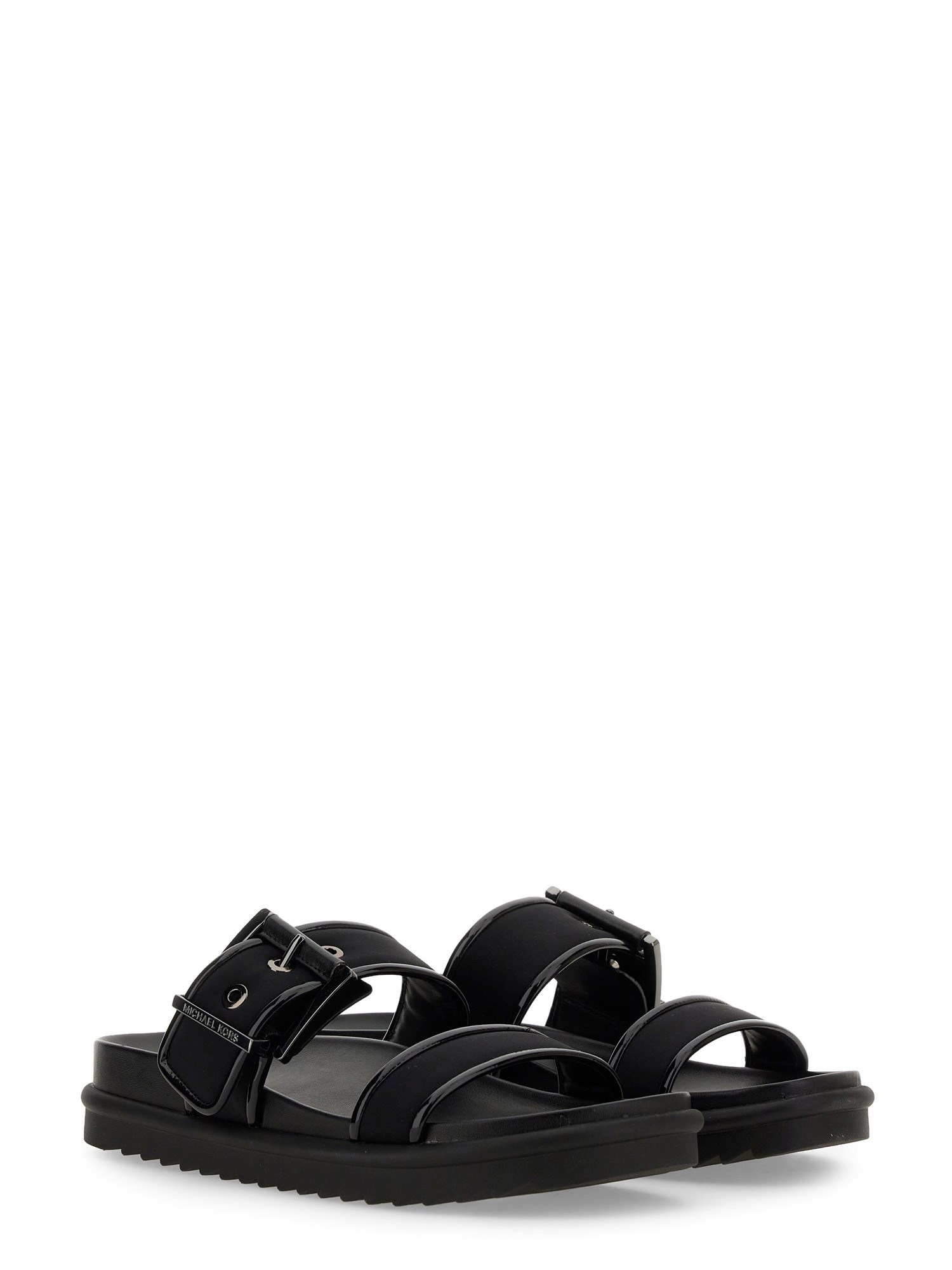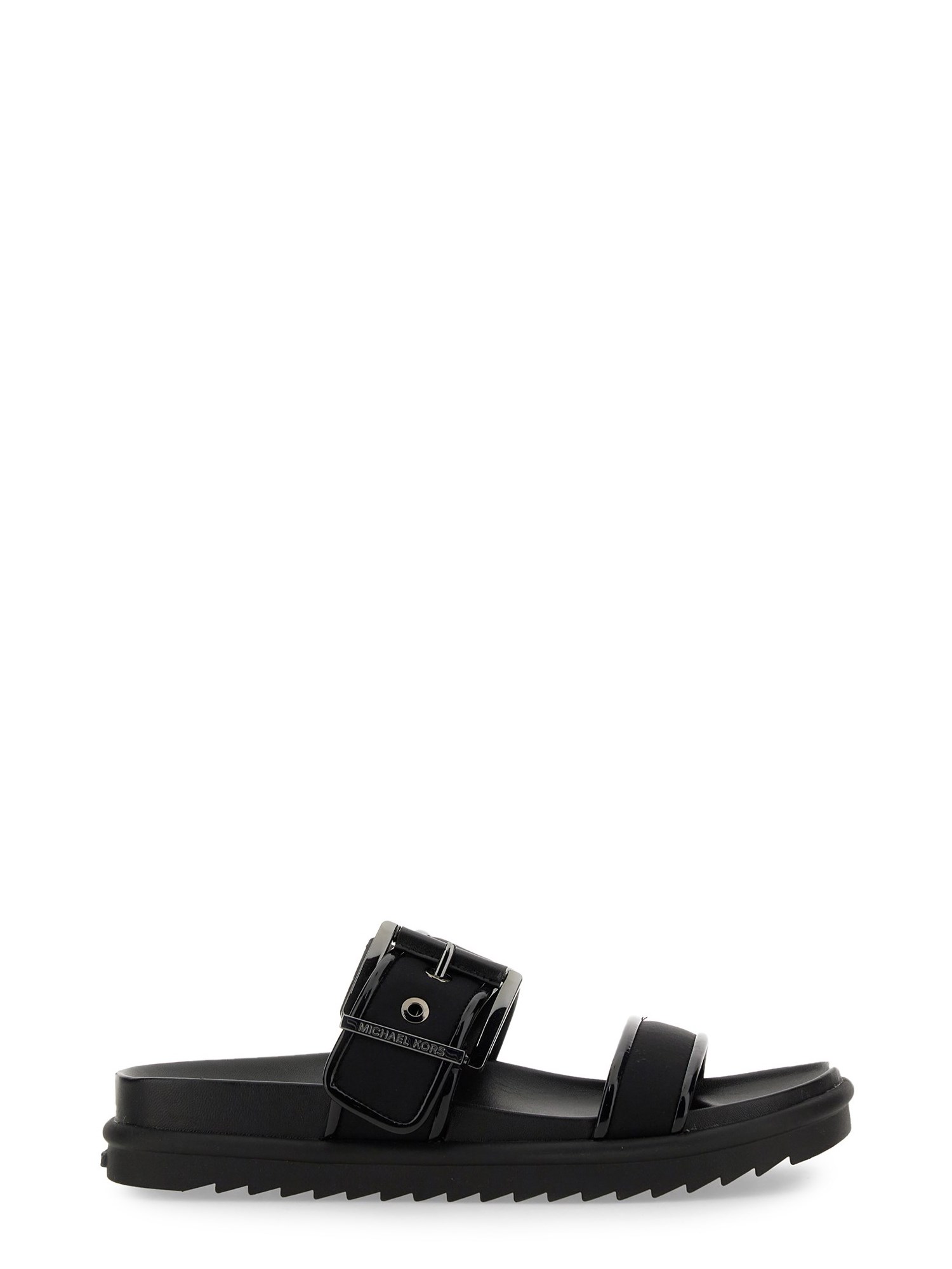 These sandals from Michael by Michael Kors feature a convenient slip-on design, allowing you to effortlessly slide them on and off. No more fussing with buckles or laces, making them a go-to choice for busy individuals. The sleek black colour adds a touch of sophistication to any outfit, making them versatile enough to be paired with jeans, skirts, or dresses.