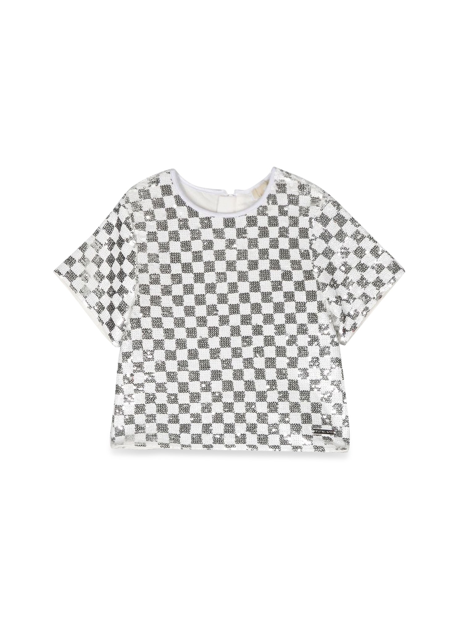 This children's T-shirt from Michael Kors is a versatile basic for all seasons. The crew neck and polyester material will keep your child warm in the winter and cool in the summer. The zipper closure on the back ensures an easy on-and-off. The crew neck is made of ribbed fabric for comfort and style.
