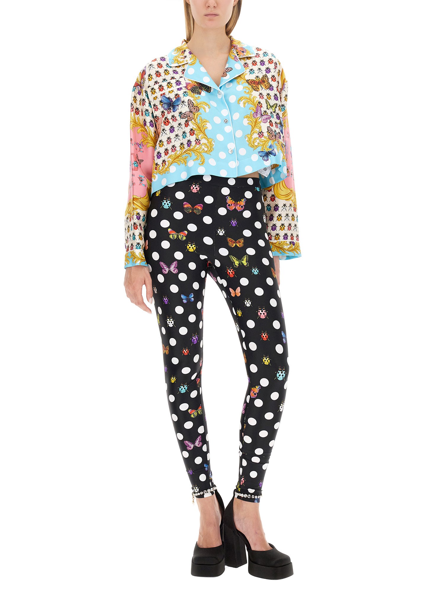 Stretch jersey leggings featuring polka dot butterflies and ladybugs, a refreshed archival pattern from the '90s. This item is part of the capsule collection co-designed with Dua Lipa.