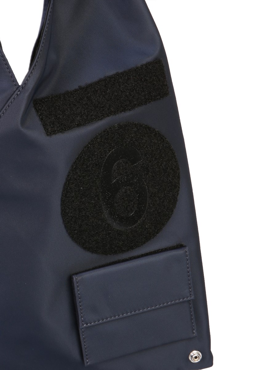 Why stress about little things when you can easily carry them anywhere in this Japanese PVC bag from MM6 Maison Margiela? With its tough exterior and lined inner, this bag holds your essentials reliably for a long time. It also has a pocket on the outside to quickly stuff some things on the go.