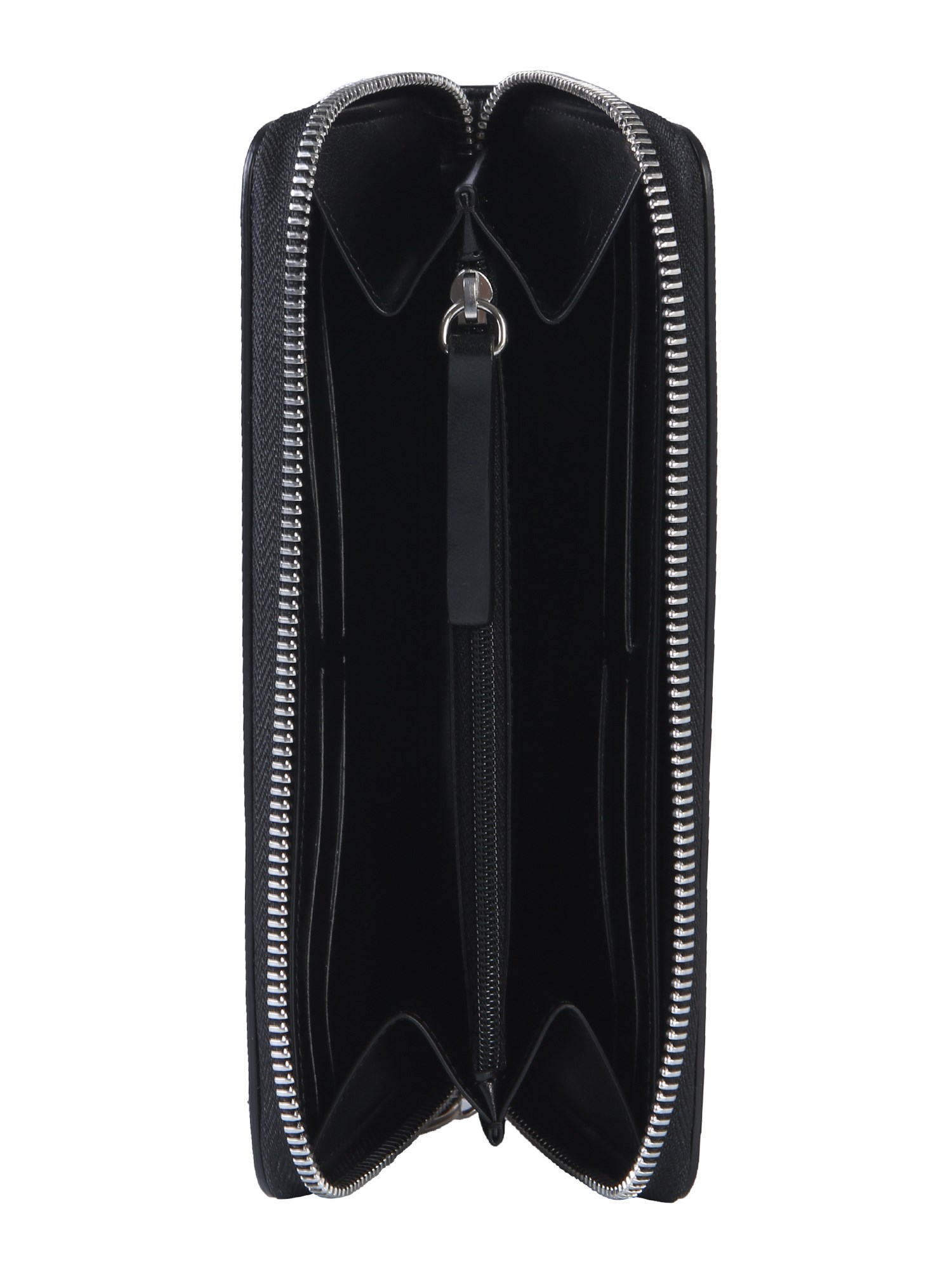 Carry your cards and cash safely with this wallet with zip from MM6 Maison Margiela. This PVC pouch has two slip document pockets, two banknote pockets, coin pocket and eight card compartments for better organisation. The wallet is fancy enough to be carried independently or you can also keep it inside your large bag.