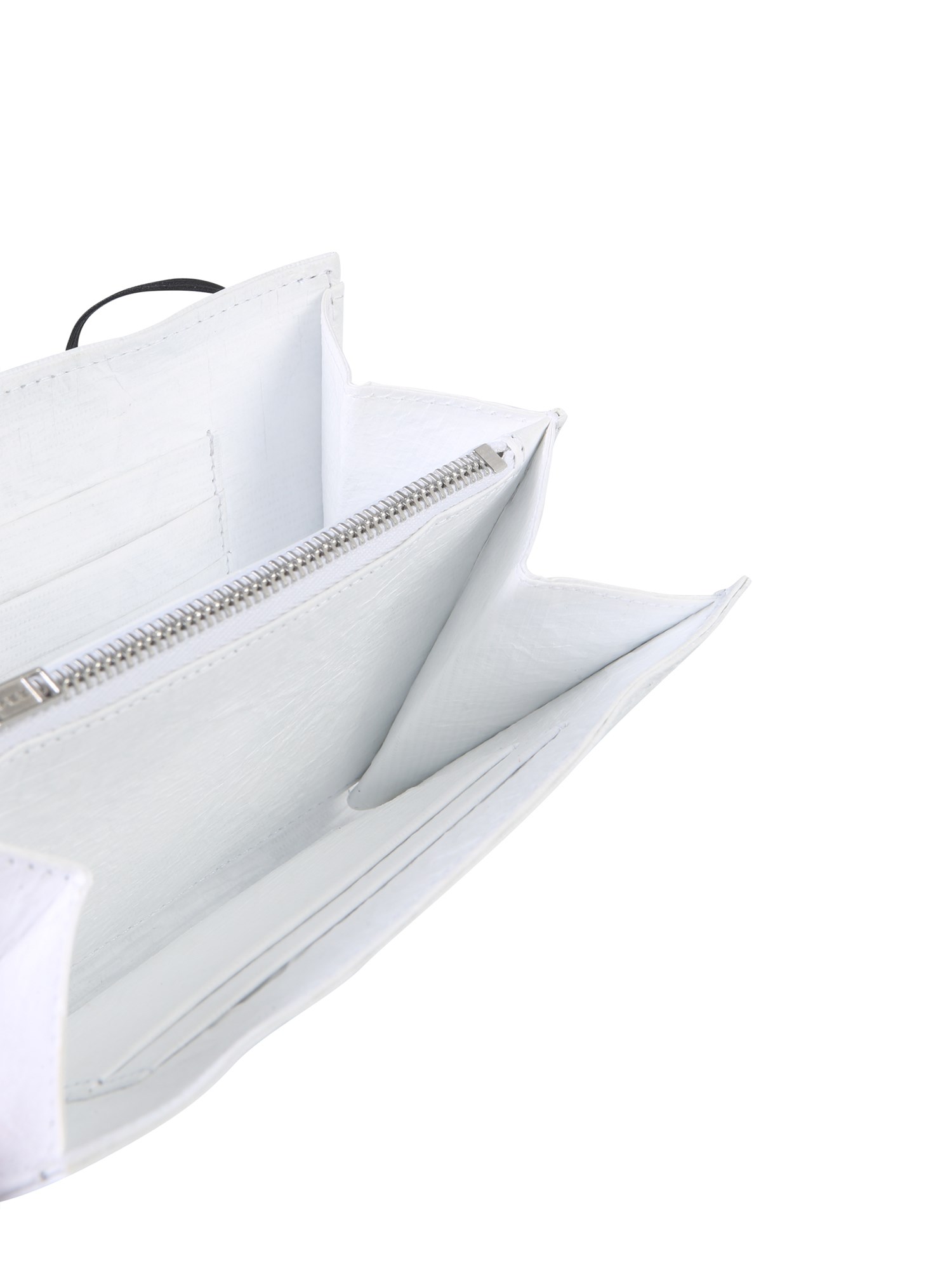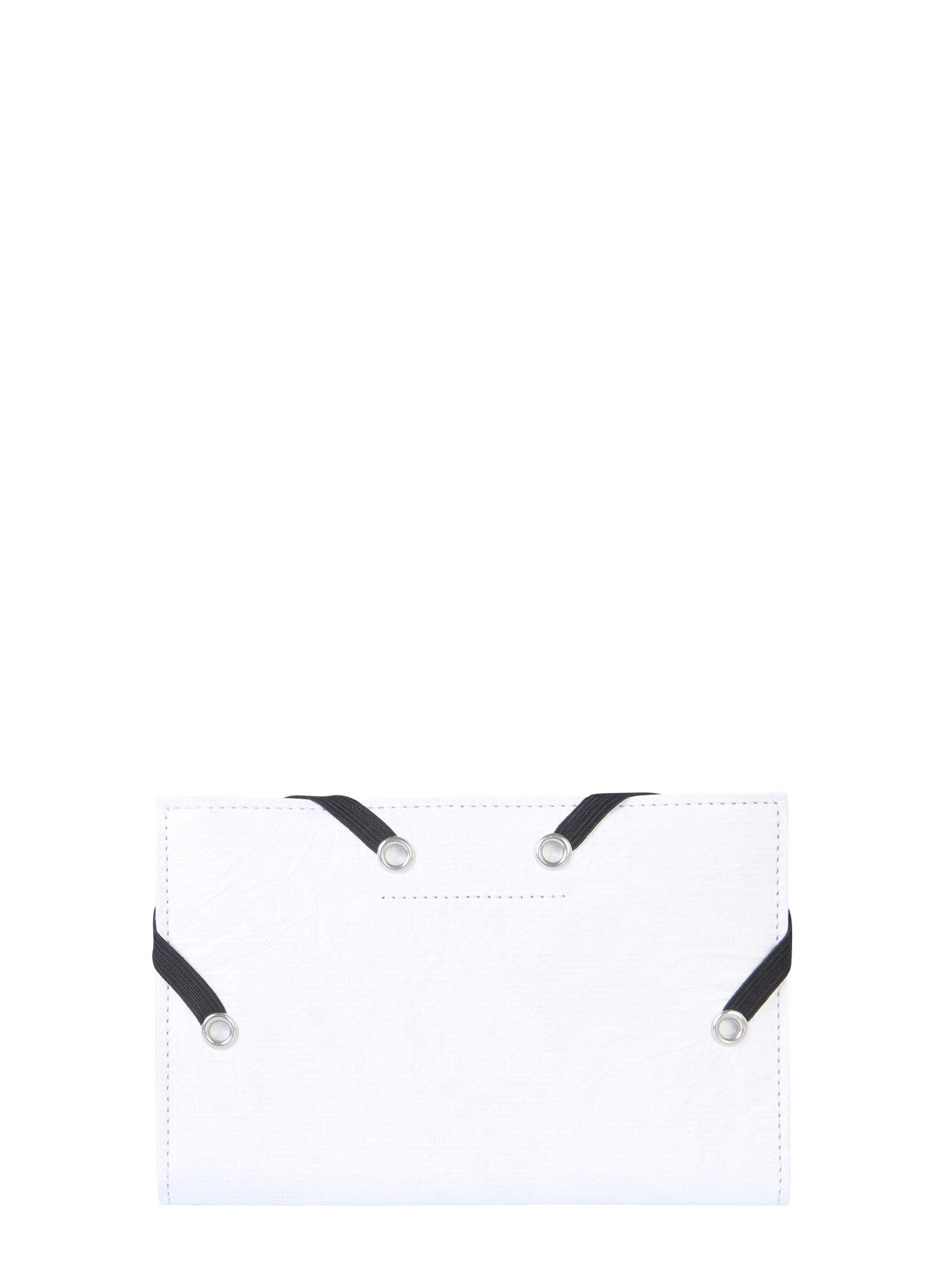 Ensure the safety of your cards and cash with this bellow wallet from MM6 Maison Margiela. The wallet is made of 52% polypropylene and 48% polyurethane that makes it ideal for daily use. The wallet has elastic tape closure to keep your valuables concealed. It has multiple pockets and compartments for better assortment of the documents, coins and cards.