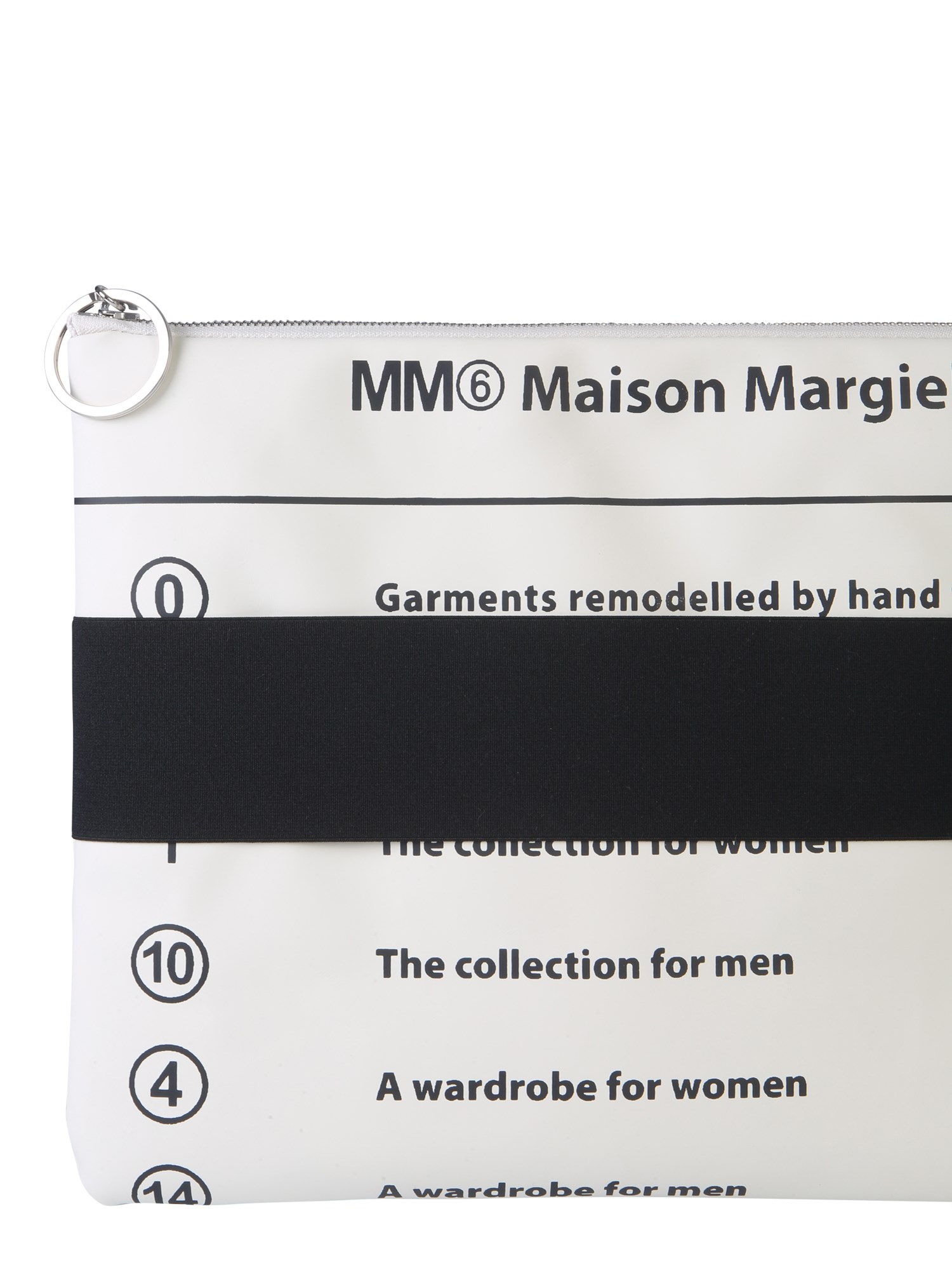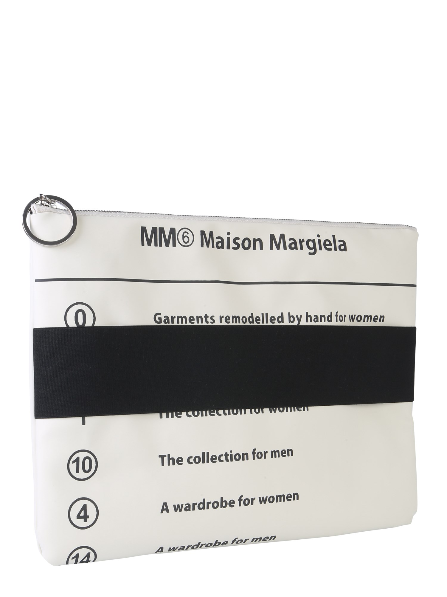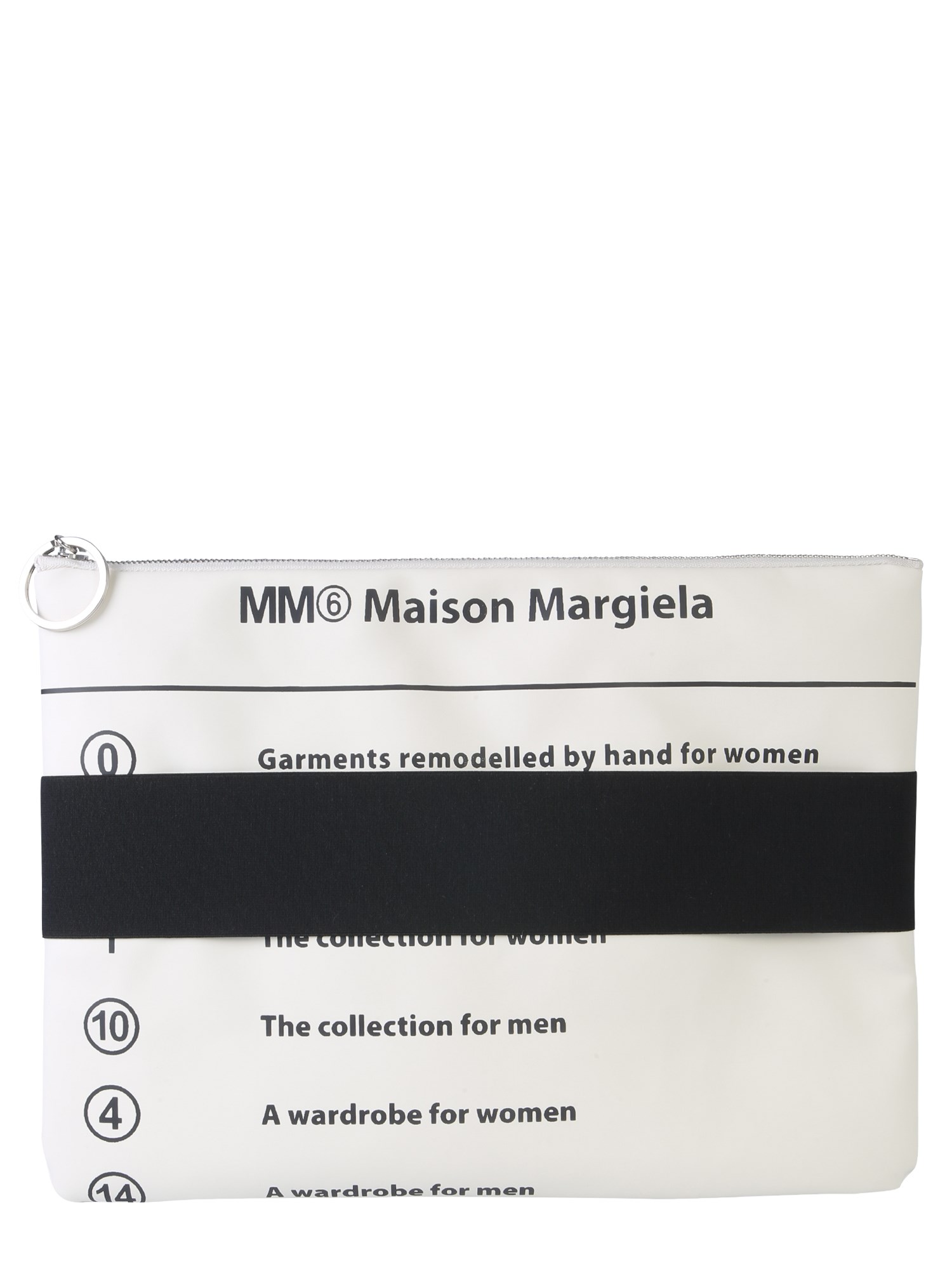 Carry your banknotes, cards and other valuable items safely in this clutch with elastic band from MM6 Maison Margiela. The clutch is made of 100% PVC material that gives it a long life. The lined interior provides a safe cabin for your essentials. The compact and slim size of this clutch helps you to carry it efficiently wherever you go.