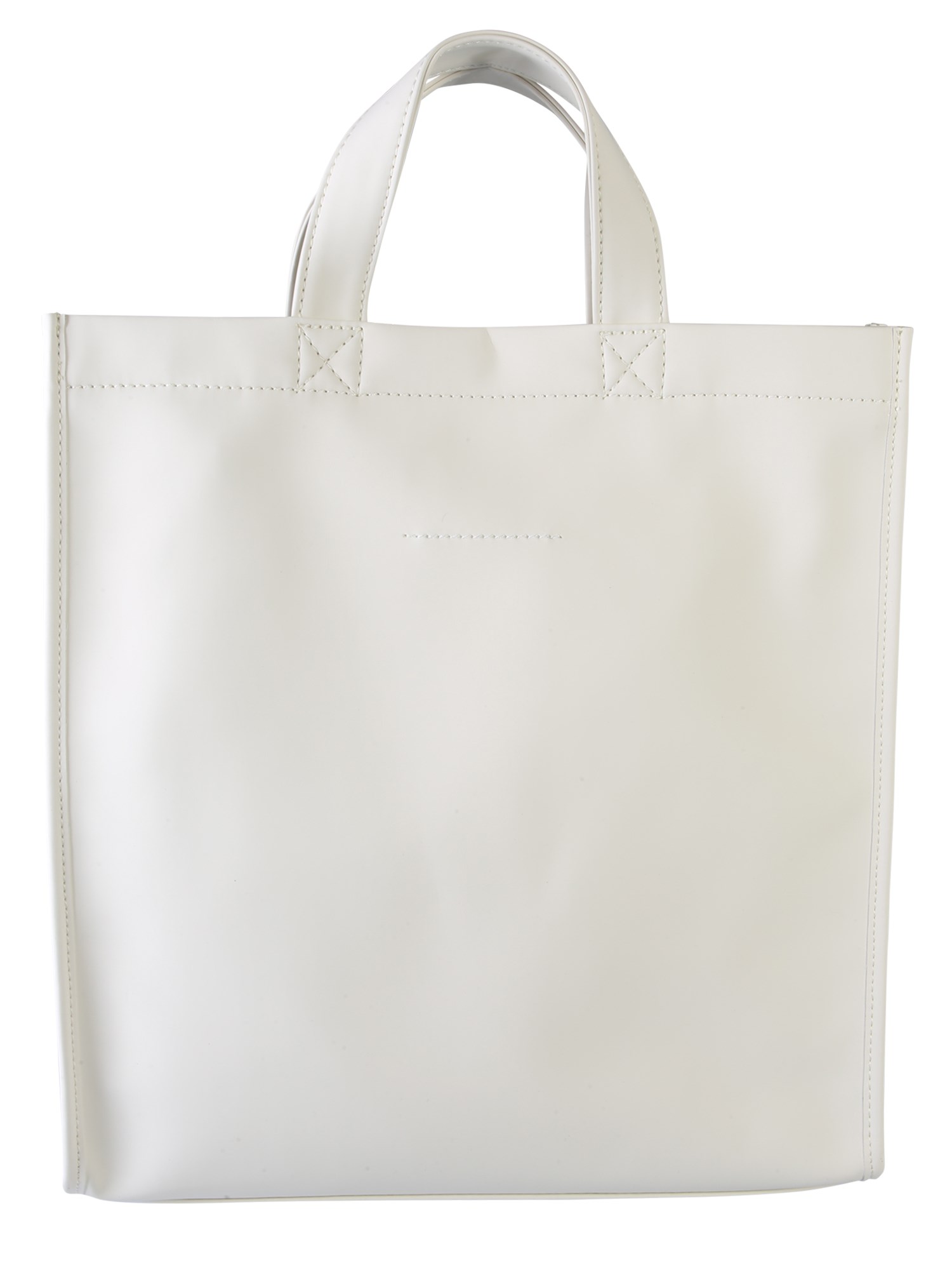 From shopping to weekend trips, this shopping bag with logo from MM6 Maison Margiela is a versatile option for your everyday needs. It is made of 100% PVC that lasts for a longer period of time. The subtle and simple design of this bag goes with every attire. The double sturdy handle makes it your perfect companion for every trip.