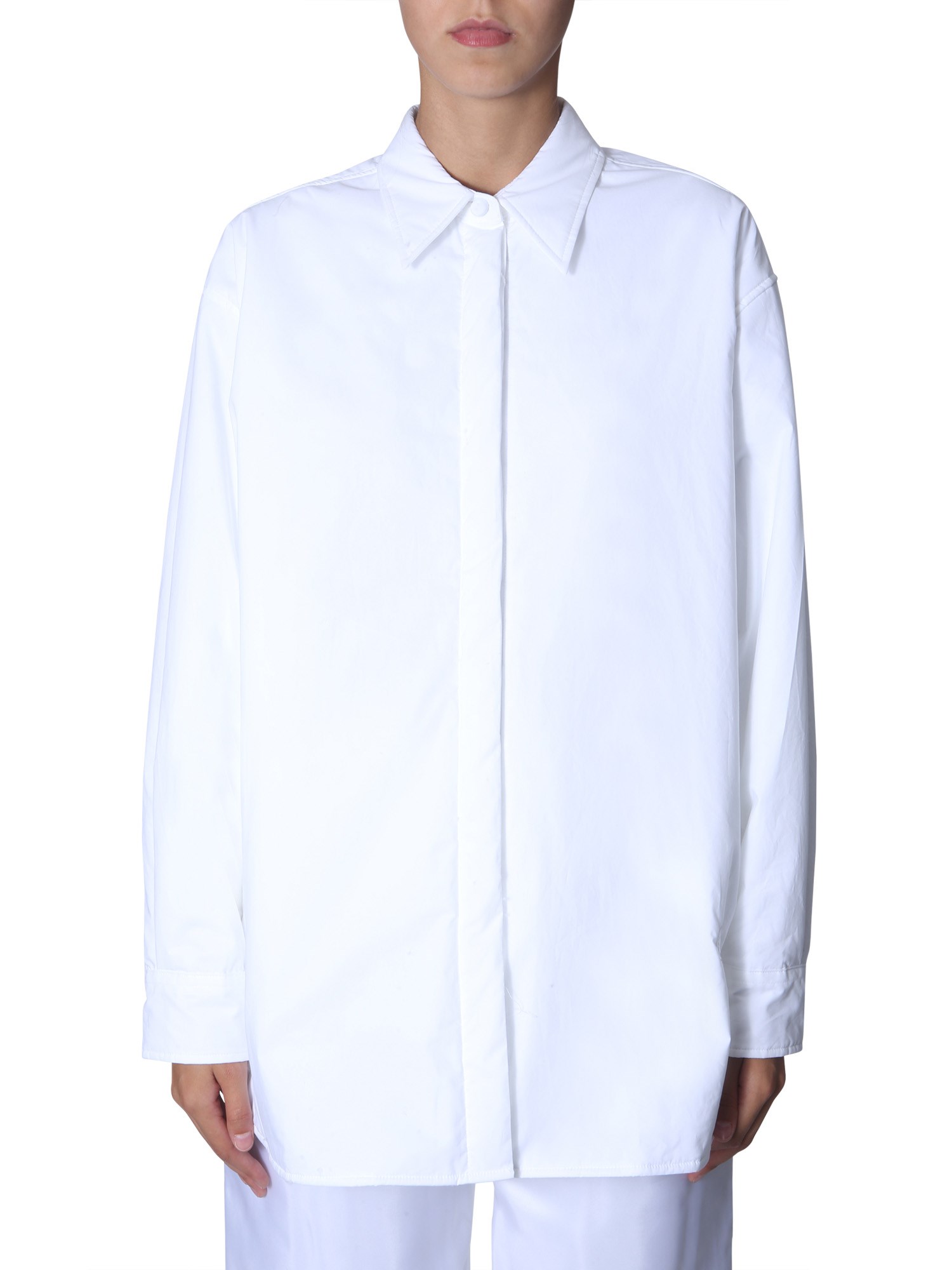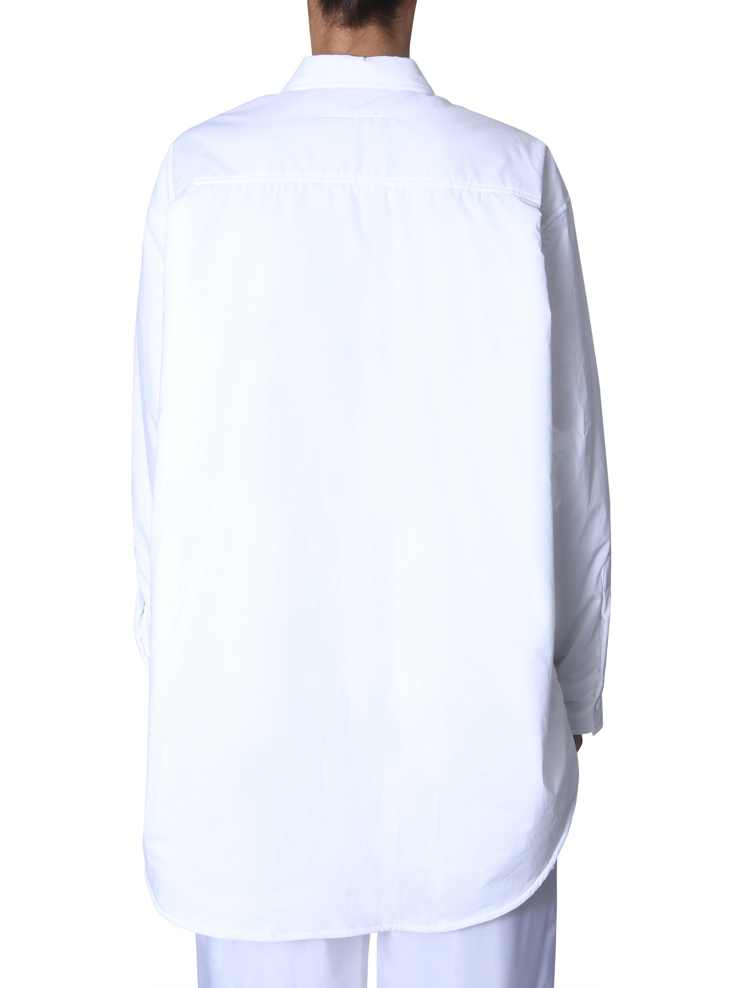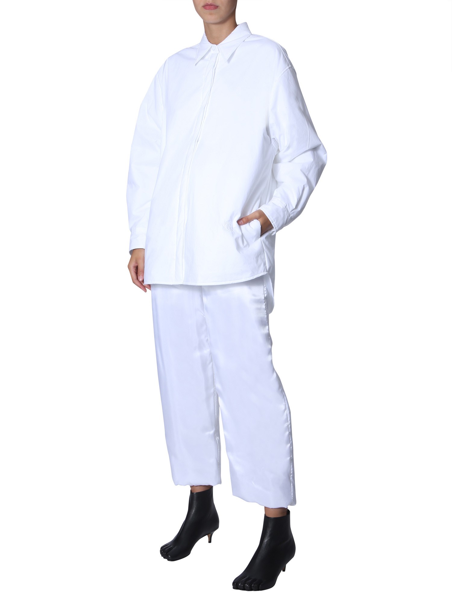 Fill the oversized section on your closet with amazing wearable like this shirt from MM6 Maison Margiela. It is completely made from cotton fabric for added durability and convenience. The straight collars are complemented by a taped button closure. Moreover, this shirt is lined with tufted, polyester padding for a snug fit.
