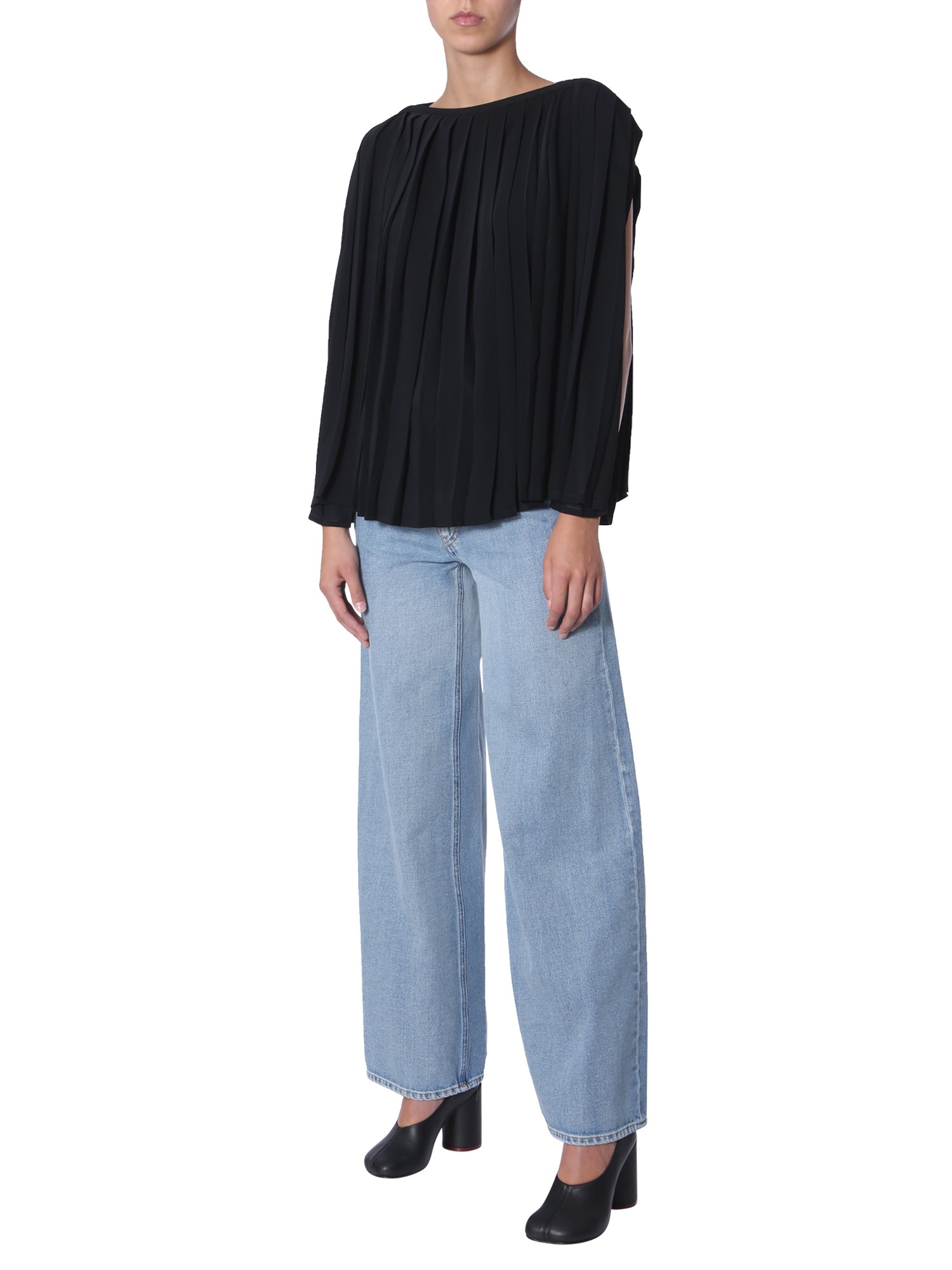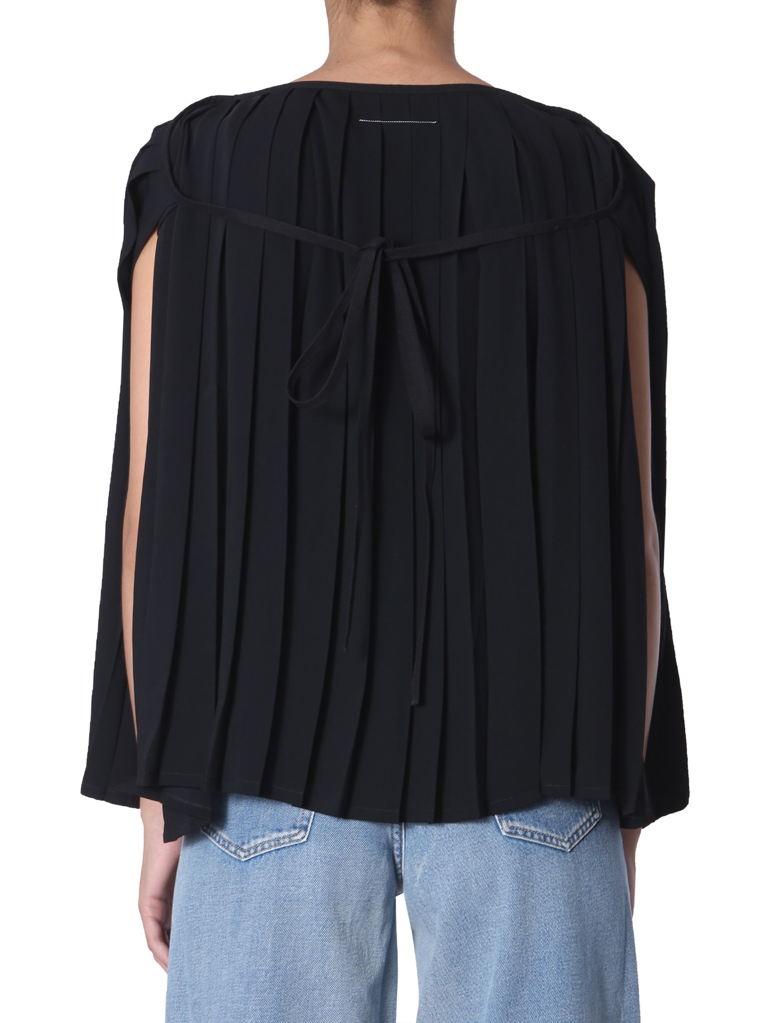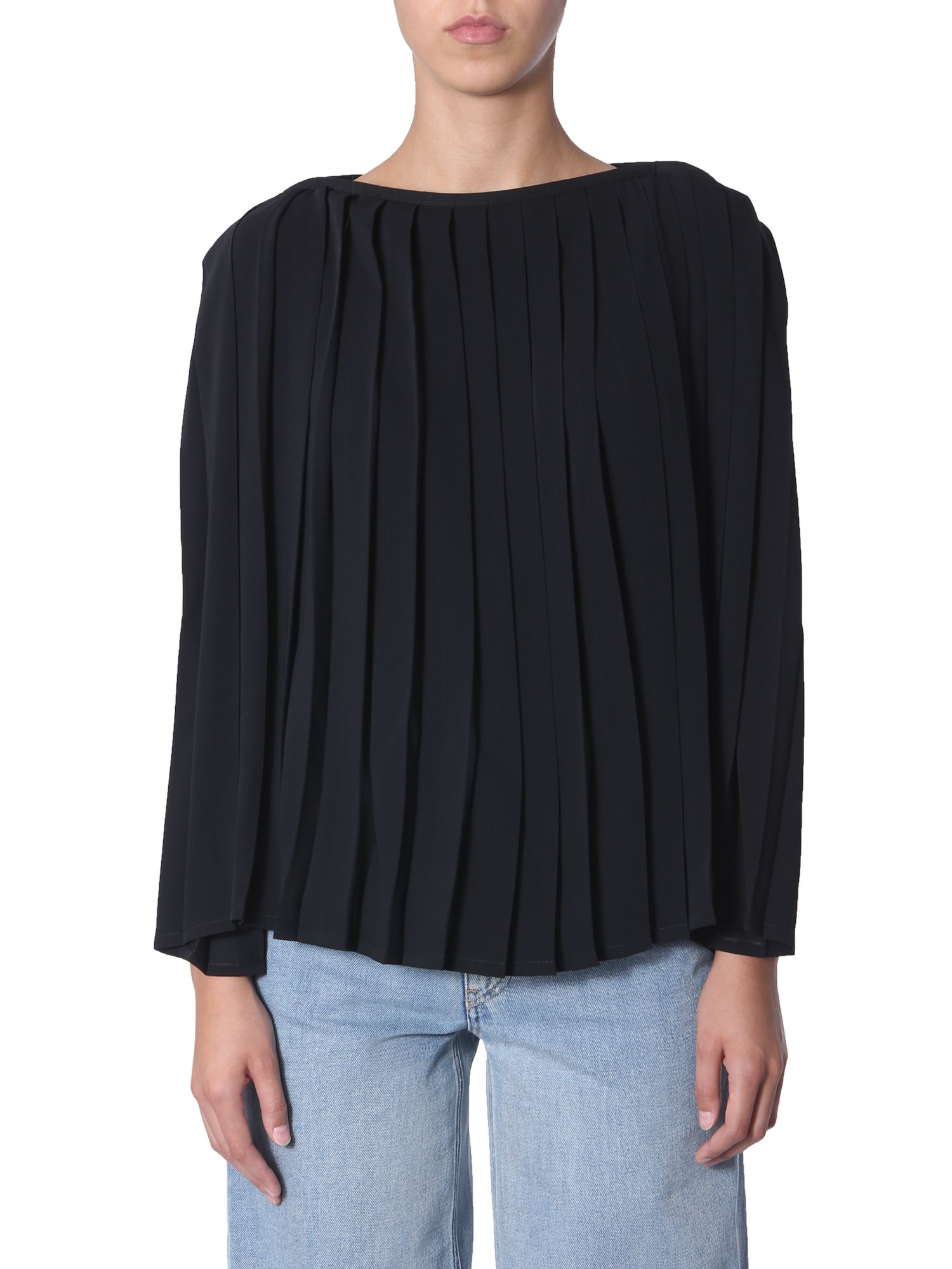 Be a trendsetter when it comes to styling with this pleated top from MM6 Maison Margiela. It has a boat neckline with a pleated surface that makes it different from other apparels. Made of 100% polyester, the top is soft and easily wicks away sweat. Style it with a pair of blue denim and ballerinas for a complete look.