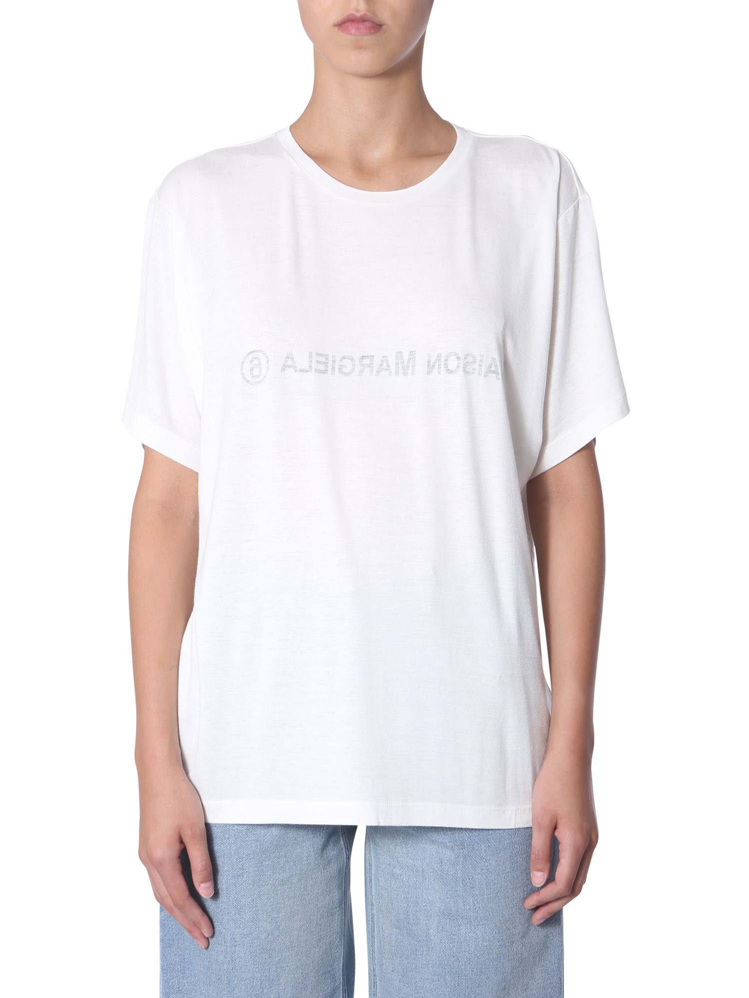 This printed T-shirt from MM6 Maison Margiela is a must-have for every summer wardrobe. The T-shirt is made of a combination of viscose, elastane and wool that feel soft against your skin and keeps you calm in hot summer season. Cut to an oversized fit, the T-shirt looks cool when paired with denim shorts and slippers.