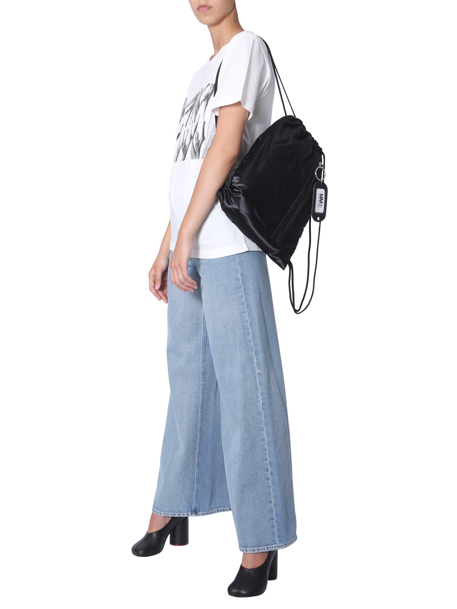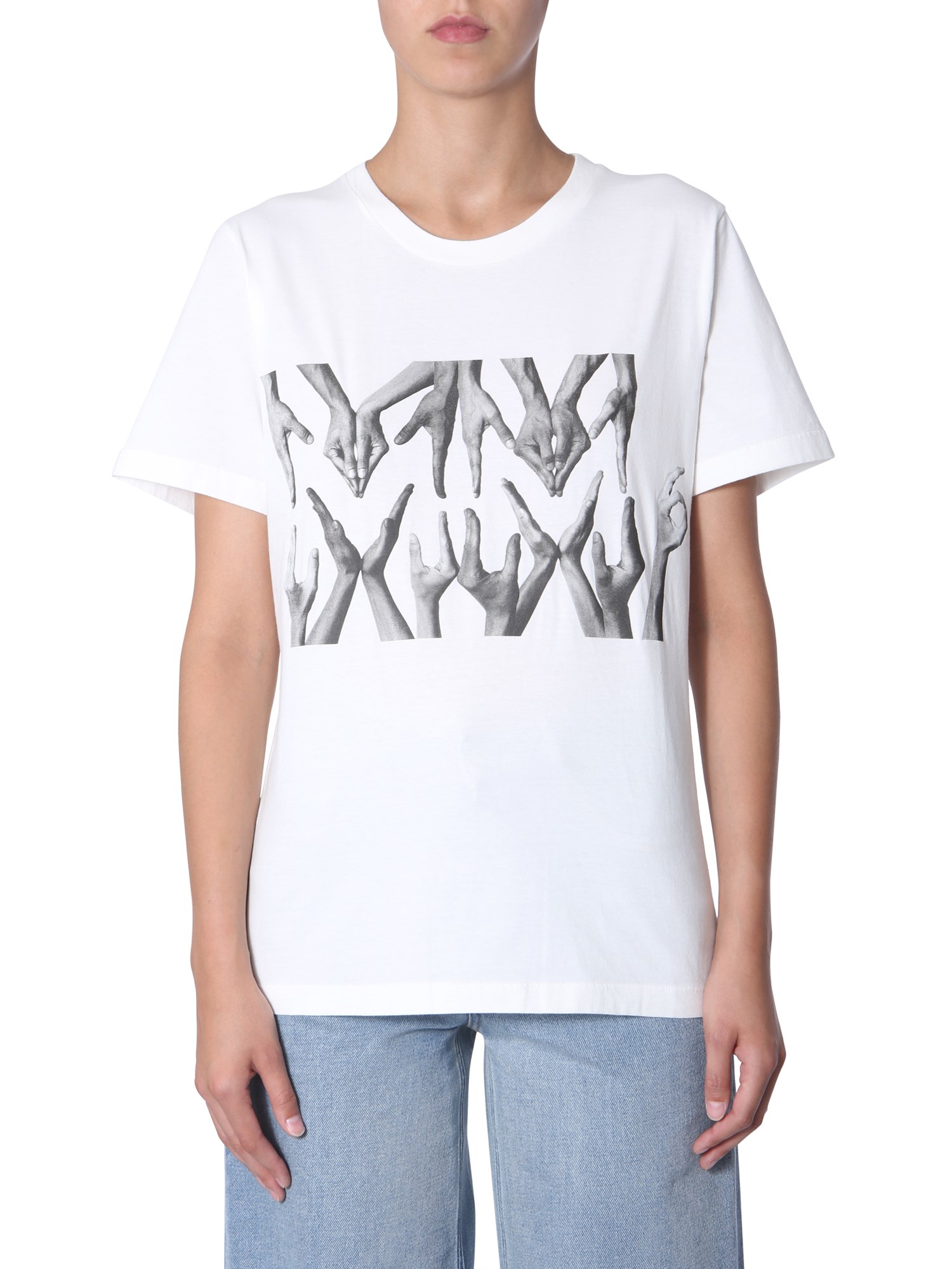 Upgrade your summer wardrobe with this cool round neck T-shirt from MM6 Maison Margiela. The T-shirt is made of 100% pure cotton that ensures utmost breathability. The simple printed front aptly complements its light colour scheme. You can style it with denim jeans and canvas shoes for a cool and sassy look.