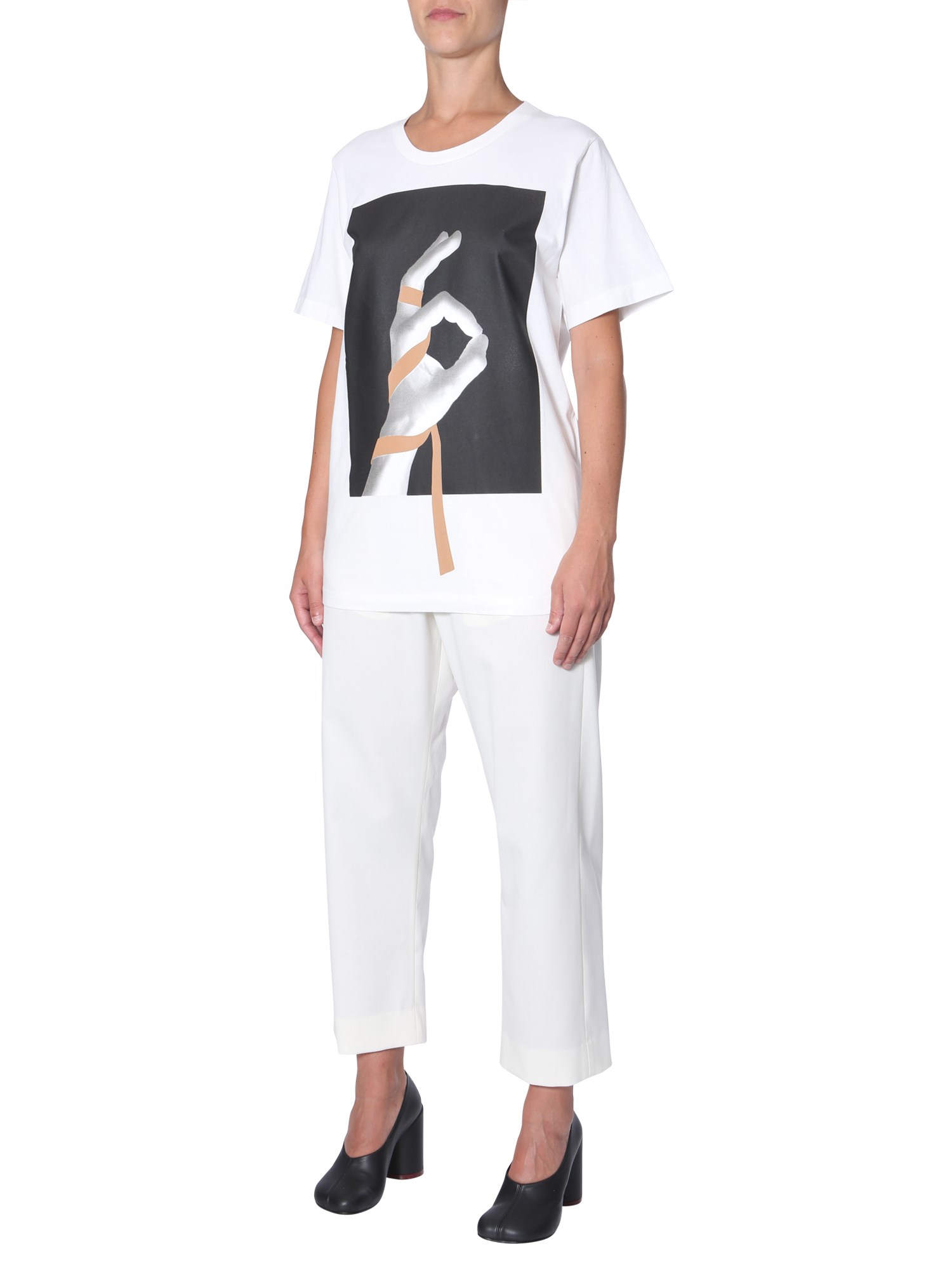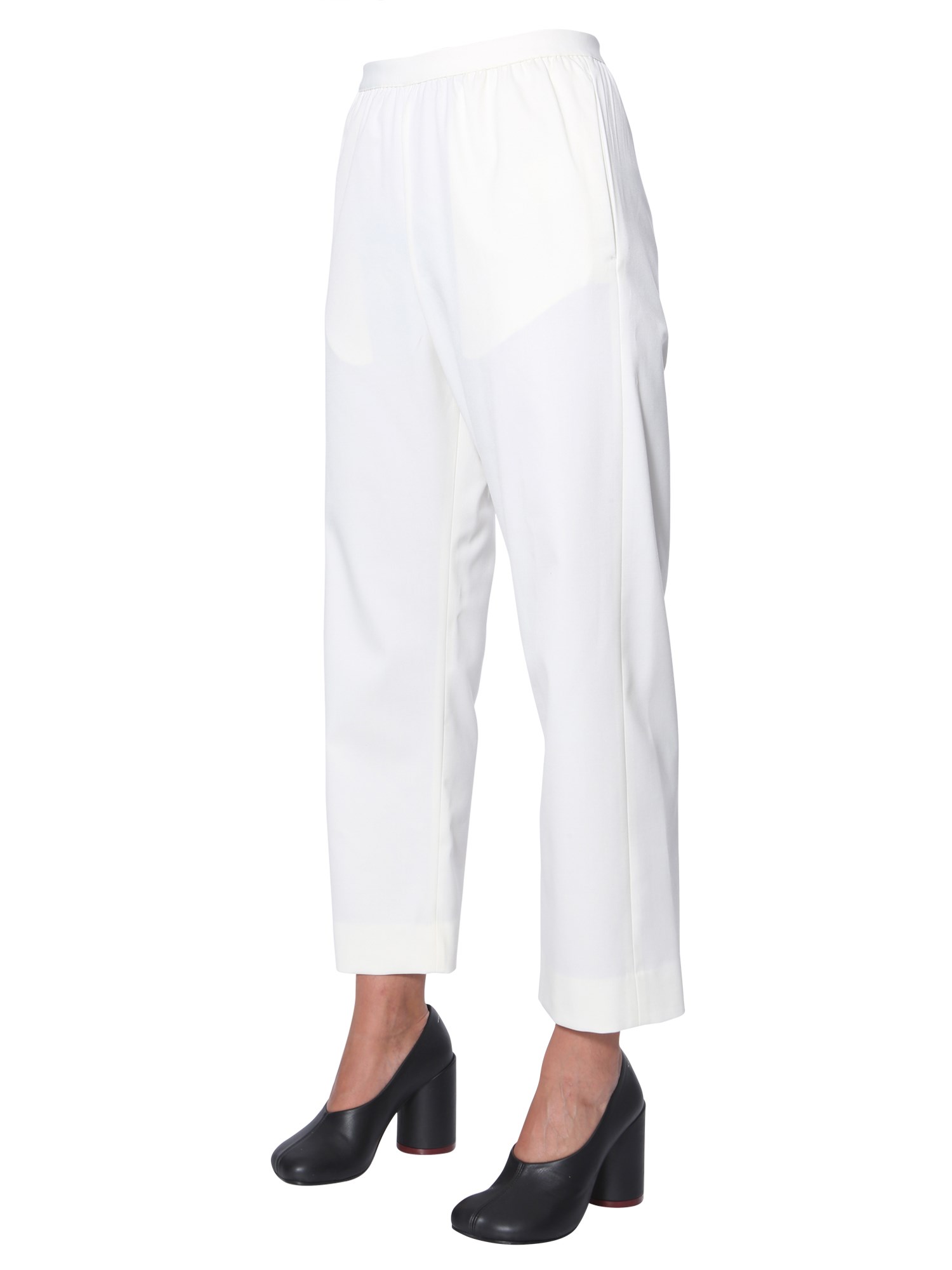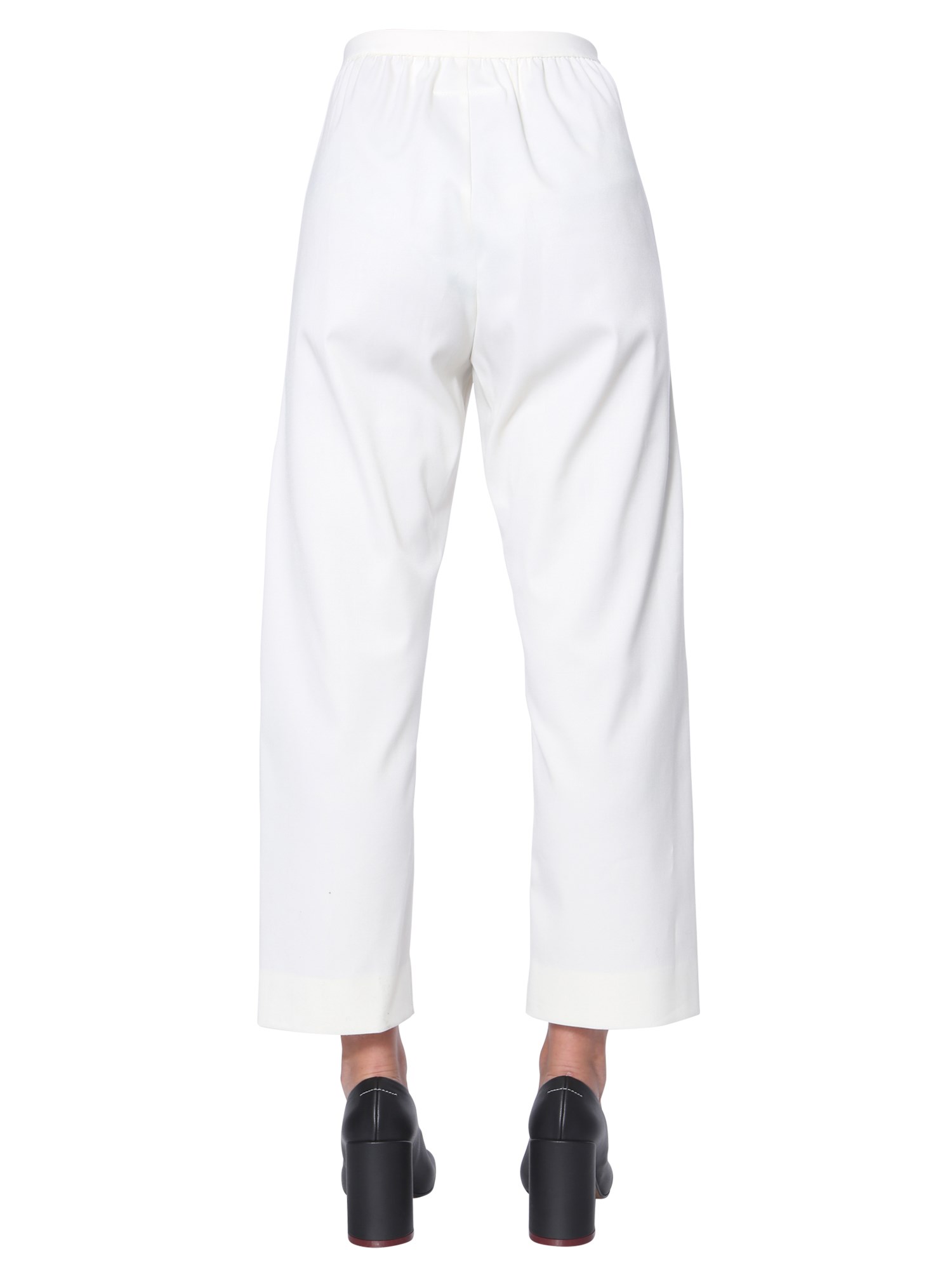 Bring newness to your formal wardrobe with these wide pants from MM6 Maison Margiela. These plain pants are made of a mix of polyester, virgin wool and elastane for enhanced softness on your skin. The pants would look great with a plaid shirt and stilettos for an official meet.