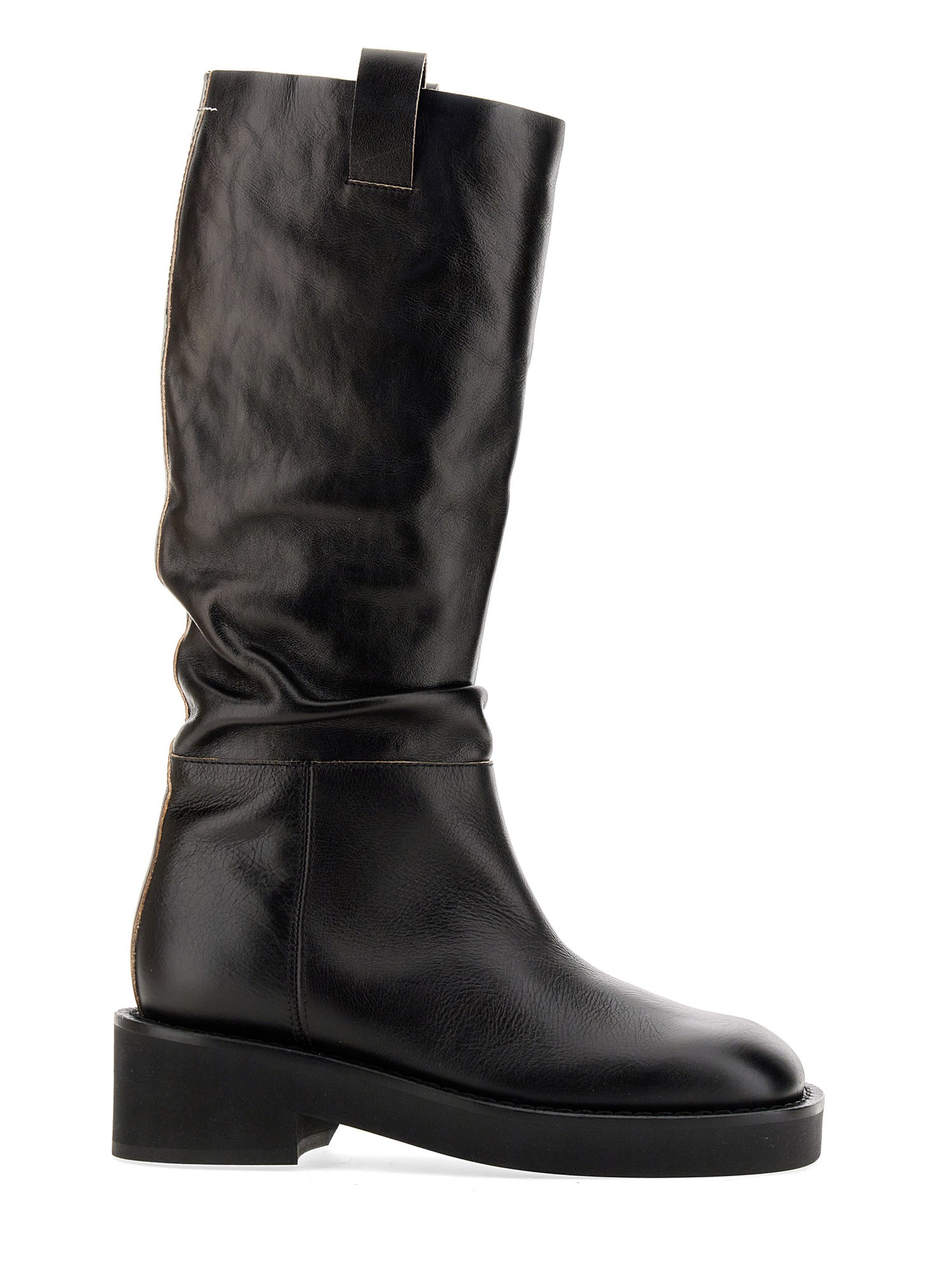 This boot from MM6 Maison Margiela is crafted from high-quality leather, with a smooth, soft finish. It is designed with a small block heel and a side zipper for easy on-off wear. This boot is made from high quality leather that is durable and attractive. This boot has a lug sole that provides traction and can be used for outdoor activities.