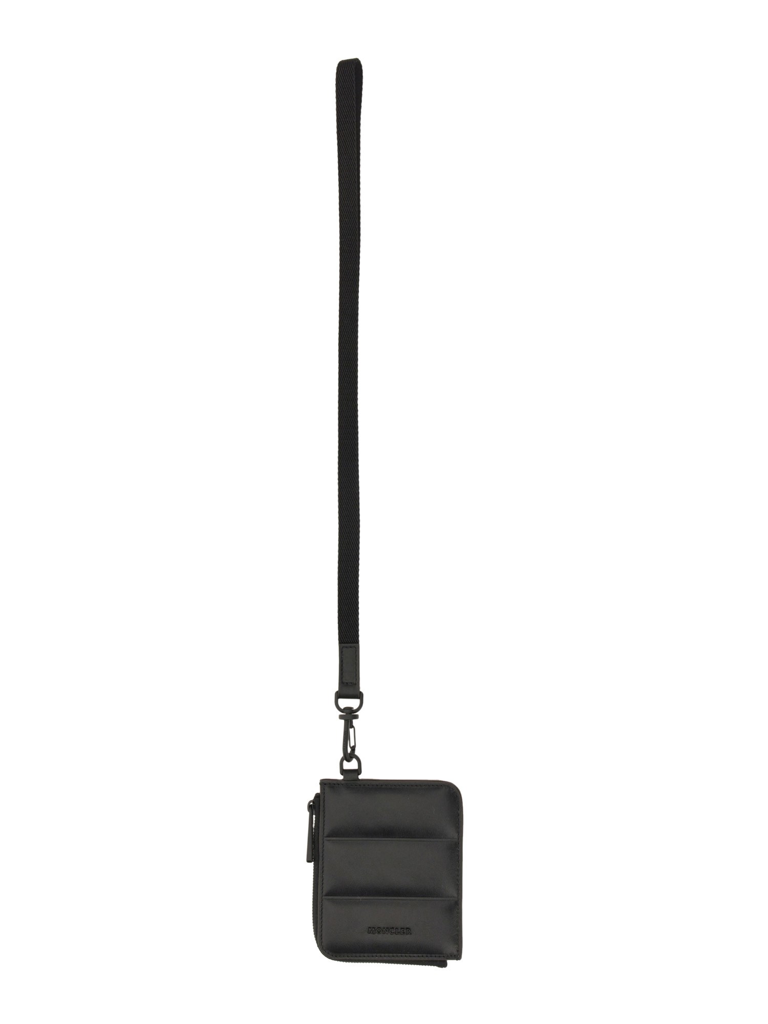 Crafted from the softest calf leather, this bifold wallet boasts a boudin-quilted effect, reminiscent of iconic Moncler down jackets. The zip-around style comes with an adjustable and detachable strap, allowing different styling options.