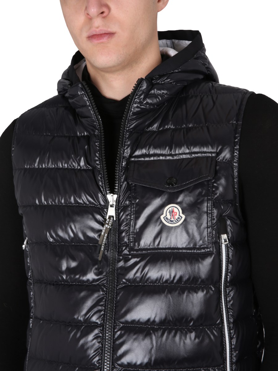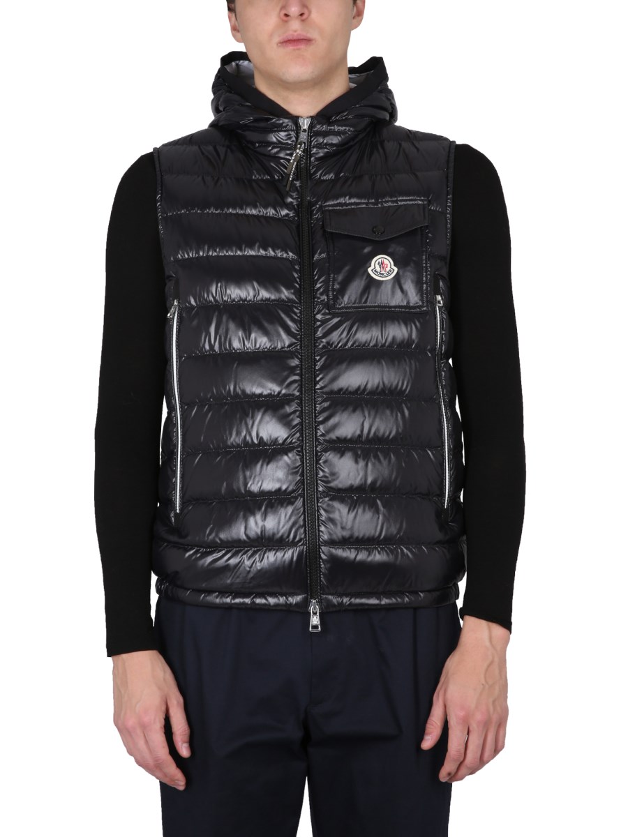 A mid-season essential, the Ragot down gilet layers perfectly over knits, sweatshirts or lighter jackets. Crafted from nylon laqué, the hooded gilet is embellished with a classic Moncler patch pocket on the chest.