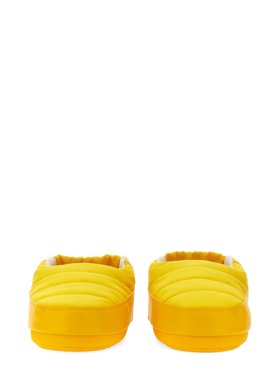 These are a lightweight sandal from Moon Boot with a great grip on the bottom. They are a little bit bulky, but they are also not too hard to walk in. The quilted nylon upper is padded and comfortable. The strap is elastic and helps to hold your foot in place. The strap also has a rubber sole for great traction.
