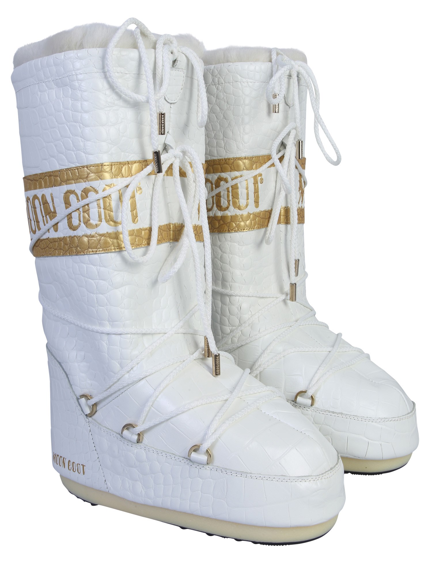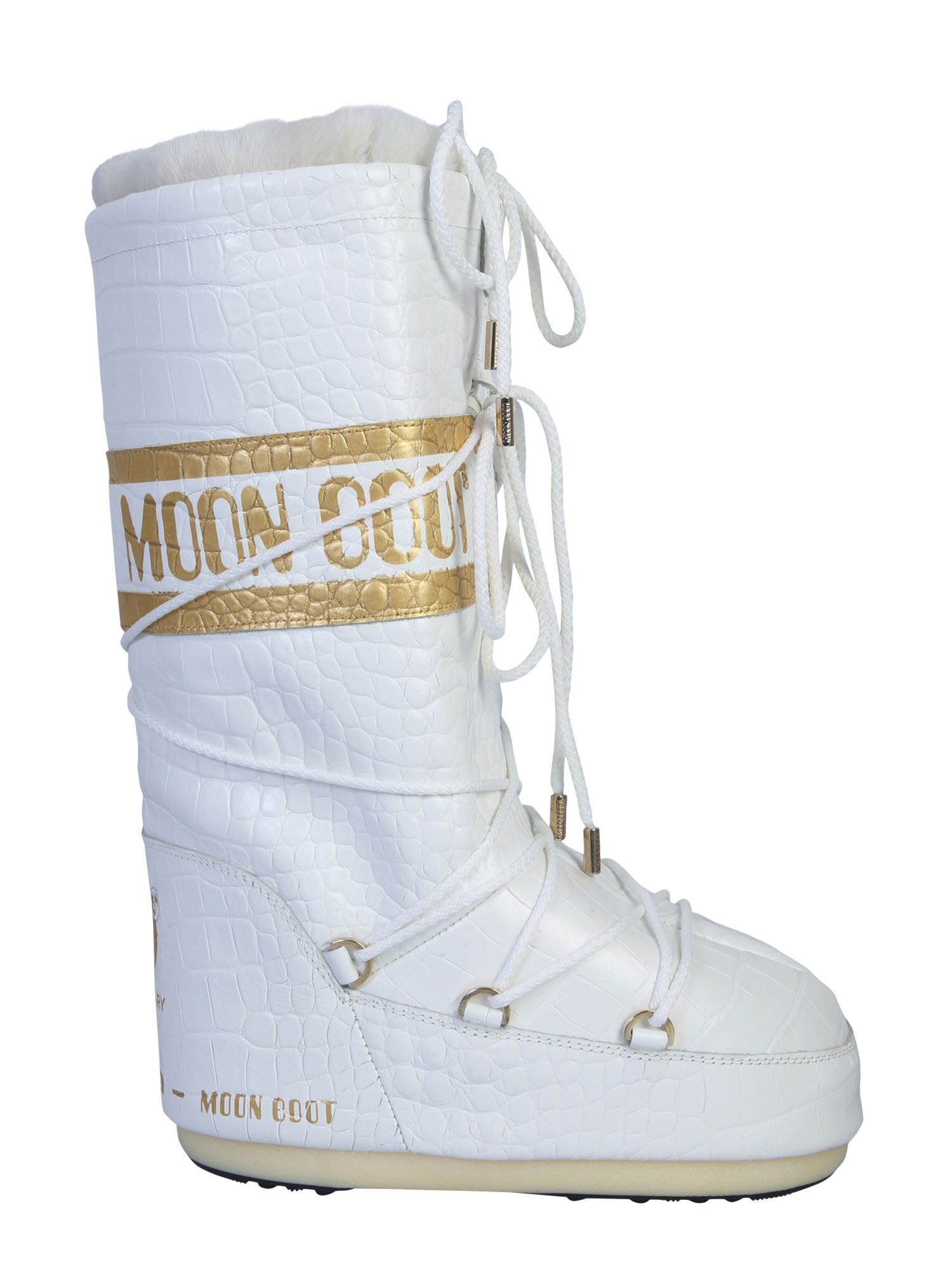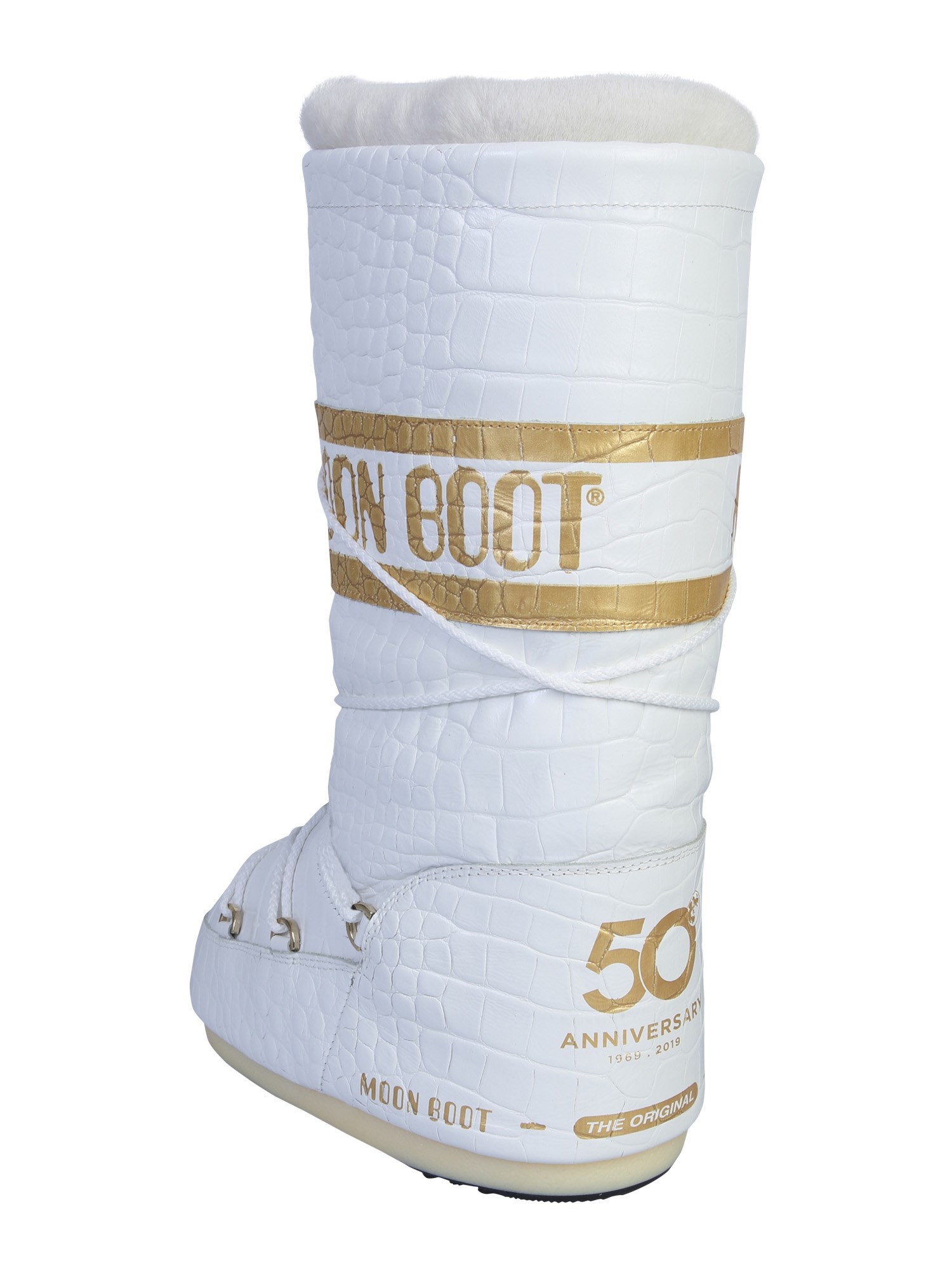 Be absolutely winter ready with these classic low 50th anniversary moon boots. The real fur padding and footbed ensure a smooth and comfortable wear. They have a textured and coco printed leather upper that stays as good as new for many years. The metal ring tubular lace gives a customised fit