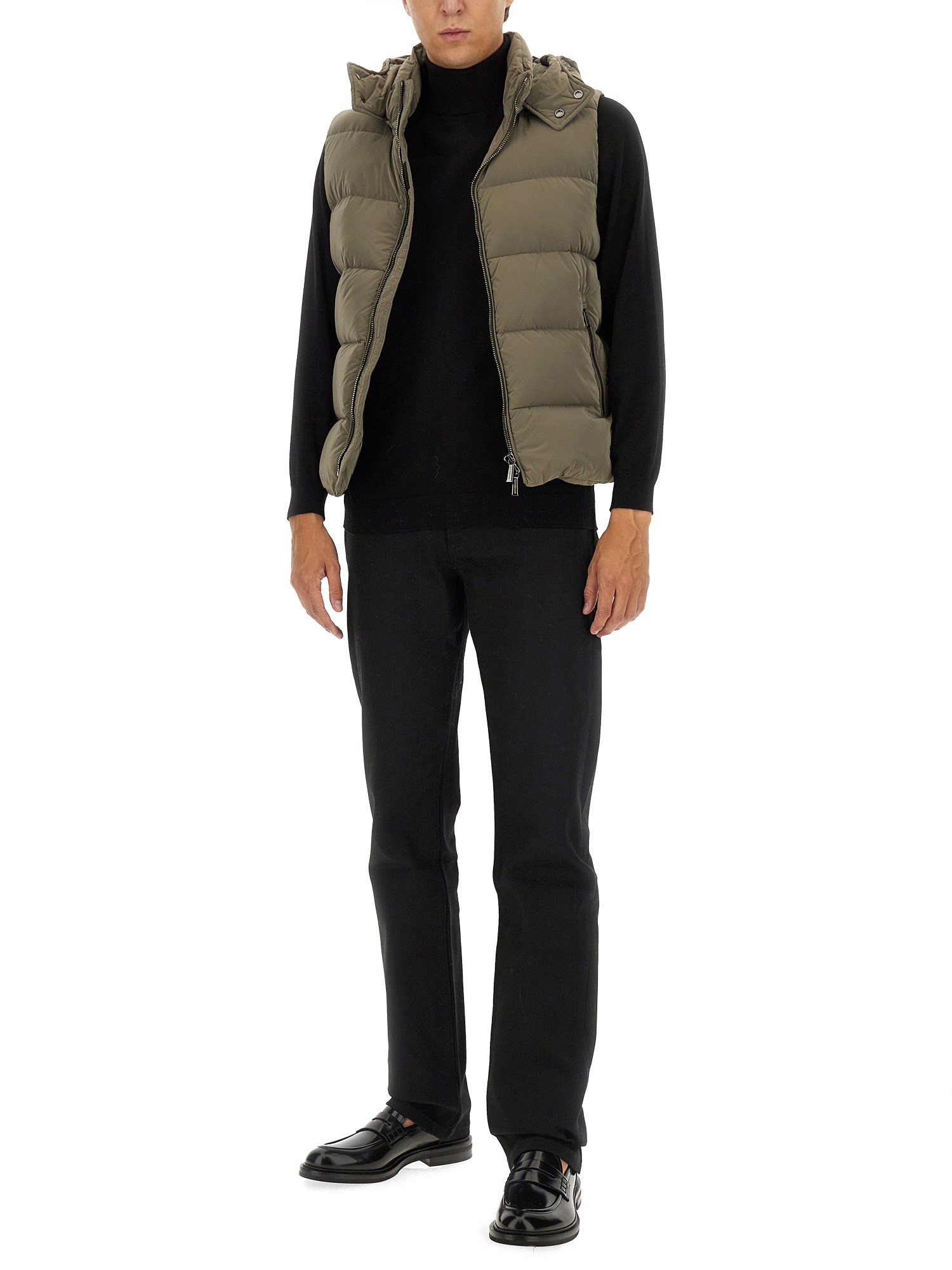 The "FIRE" padded vest from Moorer combines style and functionality, offering exceptional warmth without compromising on elegance. Crafted from high-quality materials, this vest features a sleek design that is perfect for layering, making it an ideal choice for both casual and formal occasions. The lightweight padding ensures comfort while providing insulation, and the meticulous attention to detail reflects Moorer's commitment to luxury and craftsmanship.