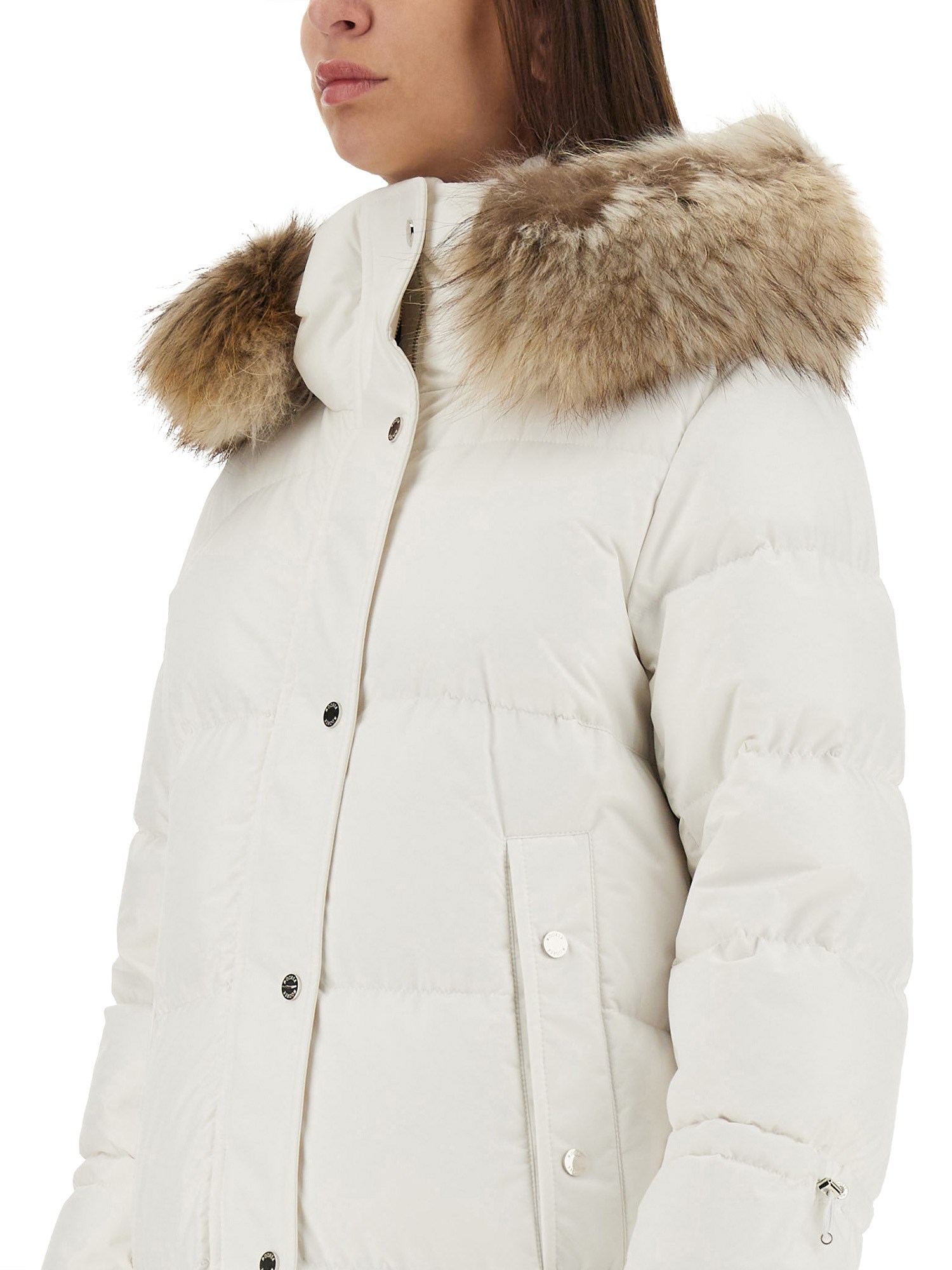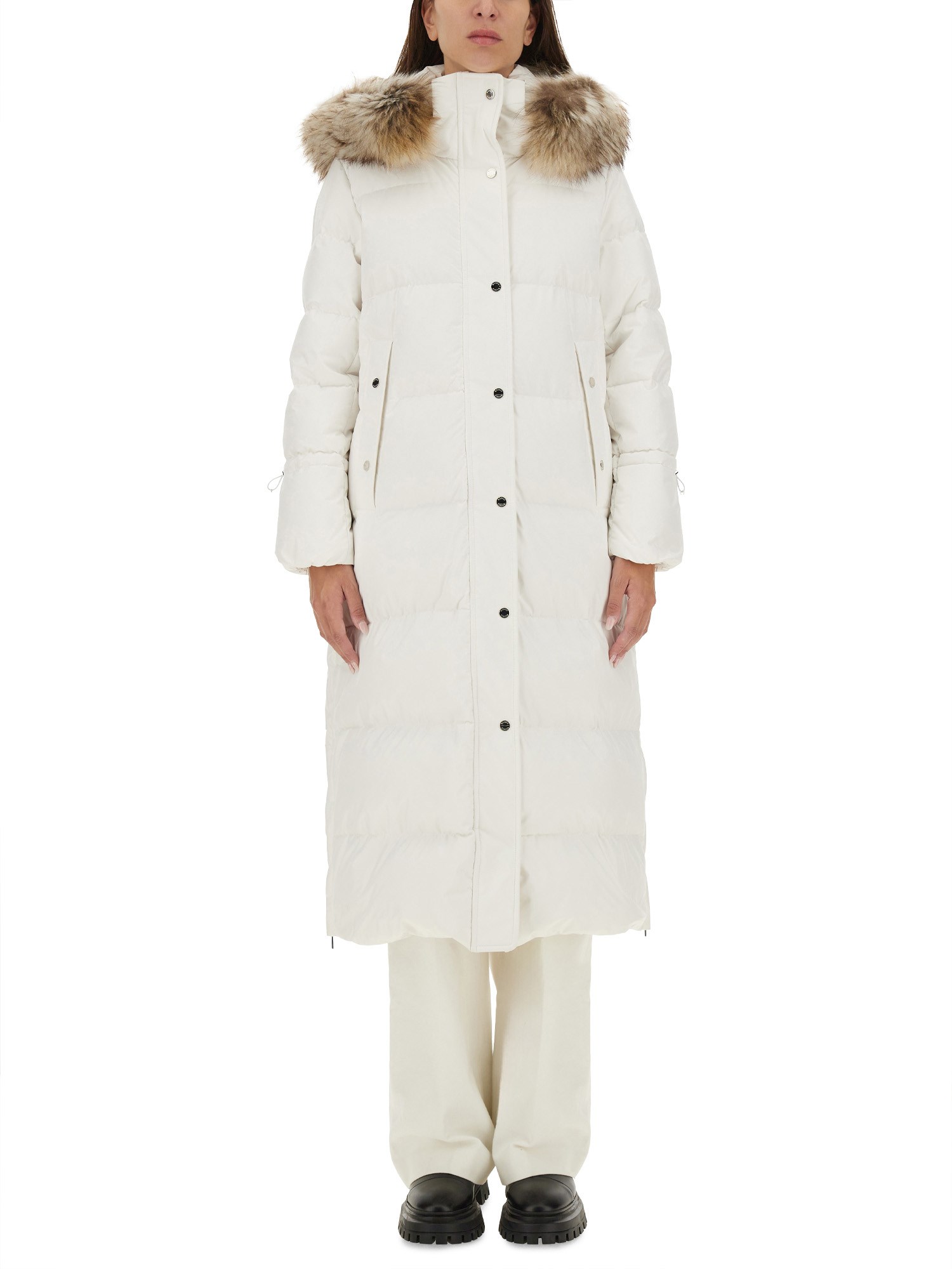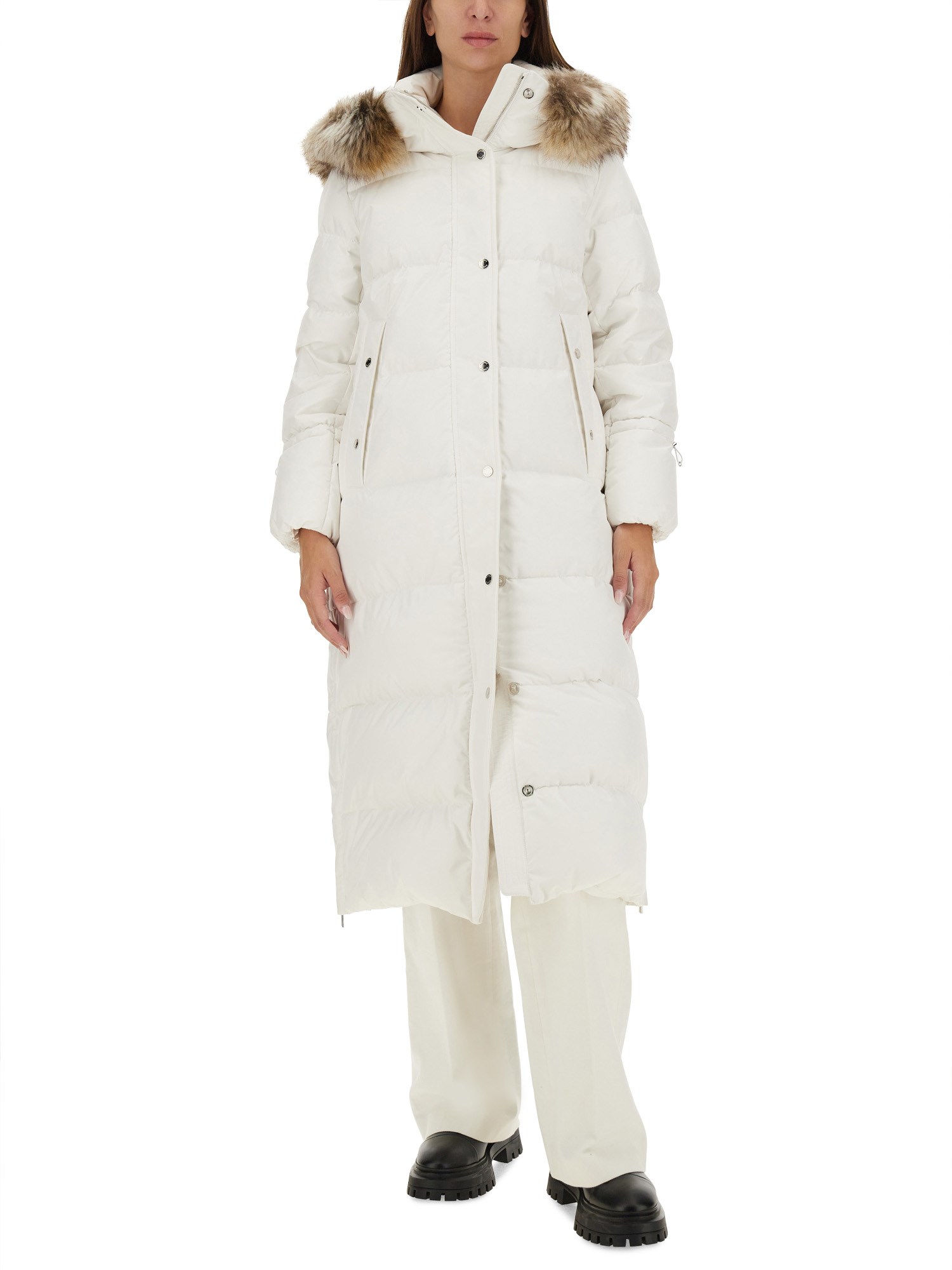 The Long Down Floor from Moorer is a premium outerwear piece designed for exceptional warmth and comfort. Crafted with high-quality down insulation, it offers superior thermal protection while maintaining a sleek silhouette. The outer fabric is both water-resistant and breathable, ensuring durability in various weather conditions. Ideal for urban environments or outdoor adventures, this versatile coat combines functionality with elegant style, making it a must-have addition to any winter wardrobe.