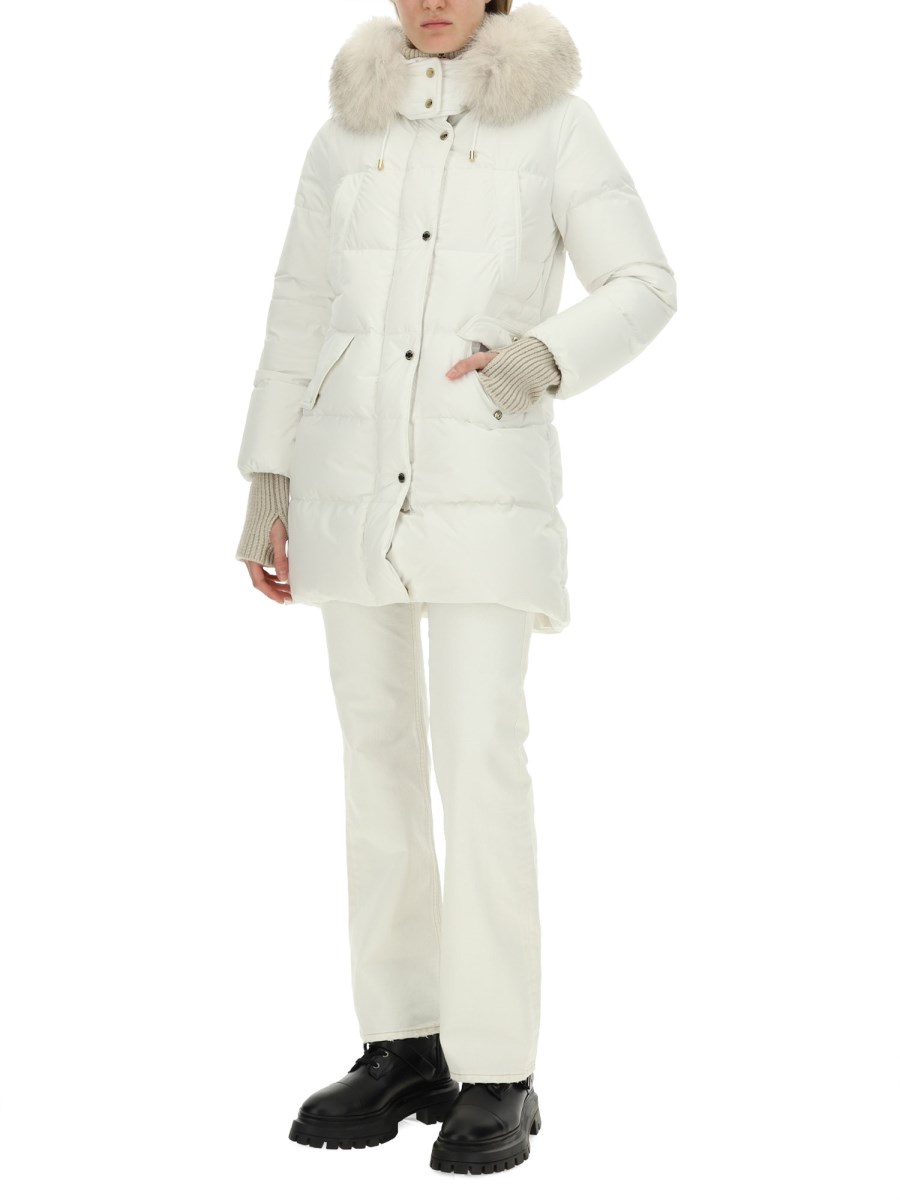 The "Talassa" down jacket from Moorer exemplifies luxury and functionality, crafted from high-quality materials to ensure warmth and comfort in cold climates. Its sleek design features a tailored fit, enhancing the wearer's silhouette while providing ample insulation through premium down filling. The jacket is equipped with a water-resistant exterior, making it suitable for various weather conditions, and includes practical elements such as multiple pockets and a detachable hood for added versatility. Ideal for both urban and outdoor settings, the "Talassa" down jacket combines style with performance, making it a quintessential addition to any winter wardrobe.