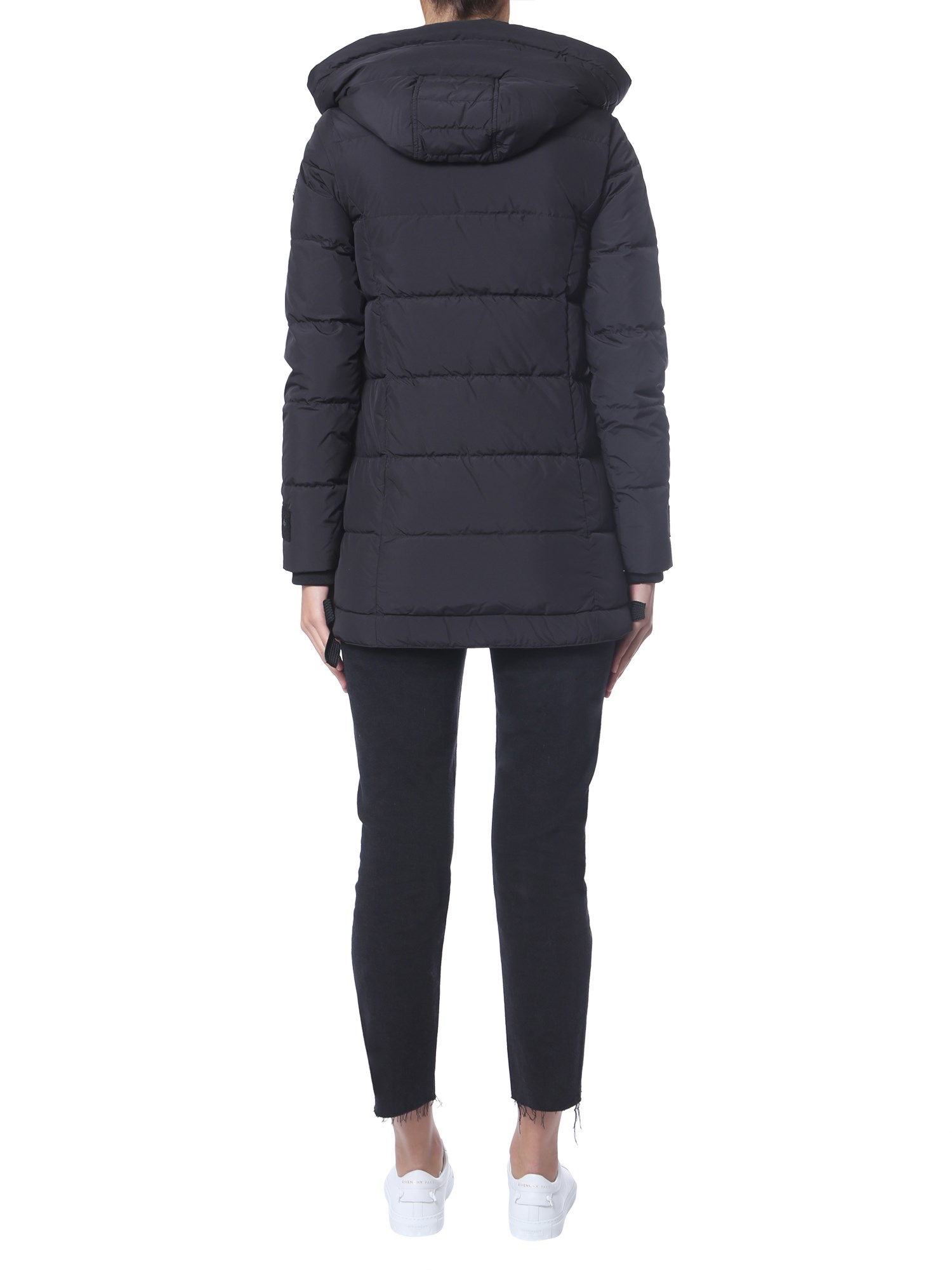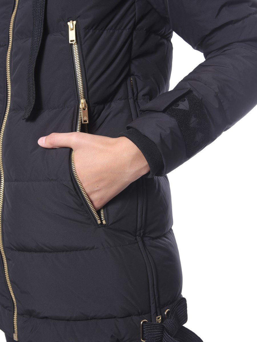 This "val marie" down jacket from Moose Knuckles is perfect to upgrade your winter wardrobe. This polyester fabric has a goose feather stuffing to lock maximum heat in chilly winter days. It has hooded high neck, front zip closure, two side pockets and inner pocket that look great with knee-length boots.