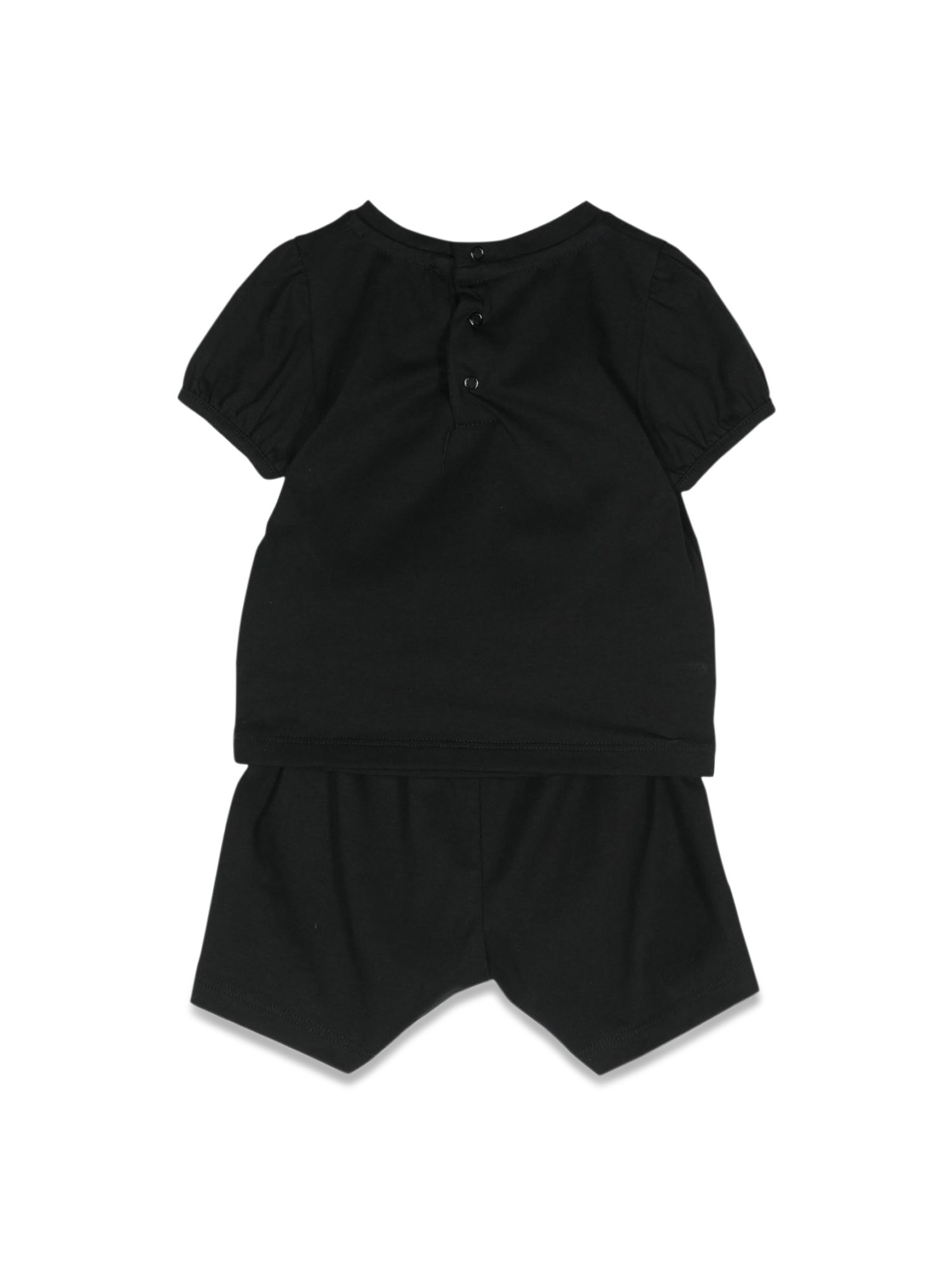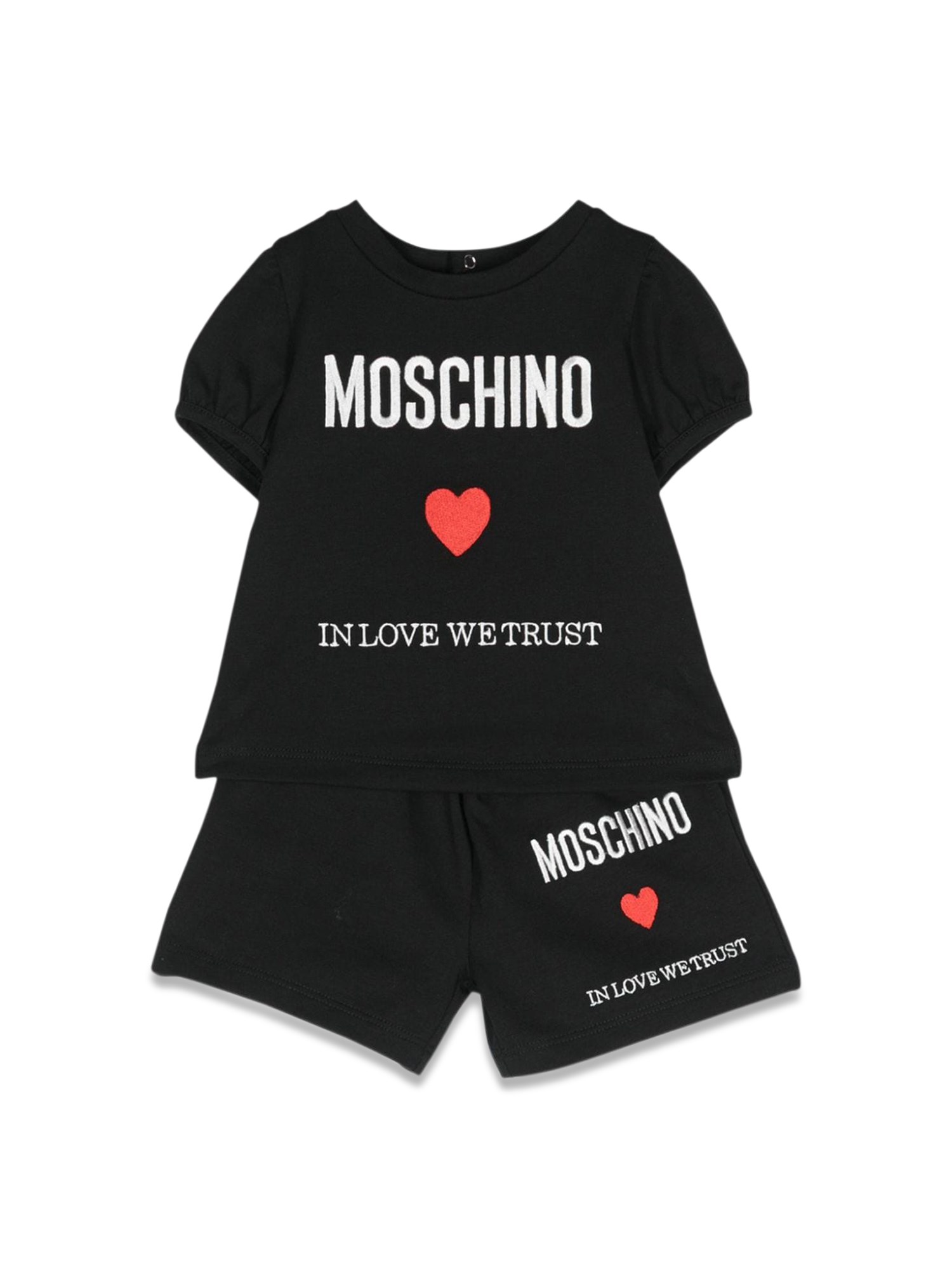 This crew neck cotton multicolour T-shirt and shorts set from Moschino is the perfect addition to any casual wardrobe. Made from soft and breathable cotton fabric, this set is designed to offer maximum comfort throughout the day. The crew neck adds a stylish touch, while the multicolour design adds a fun and vibrant twist to your outfit. The set includes a T-shirt and shorts, so you can mix and match to create different looks.