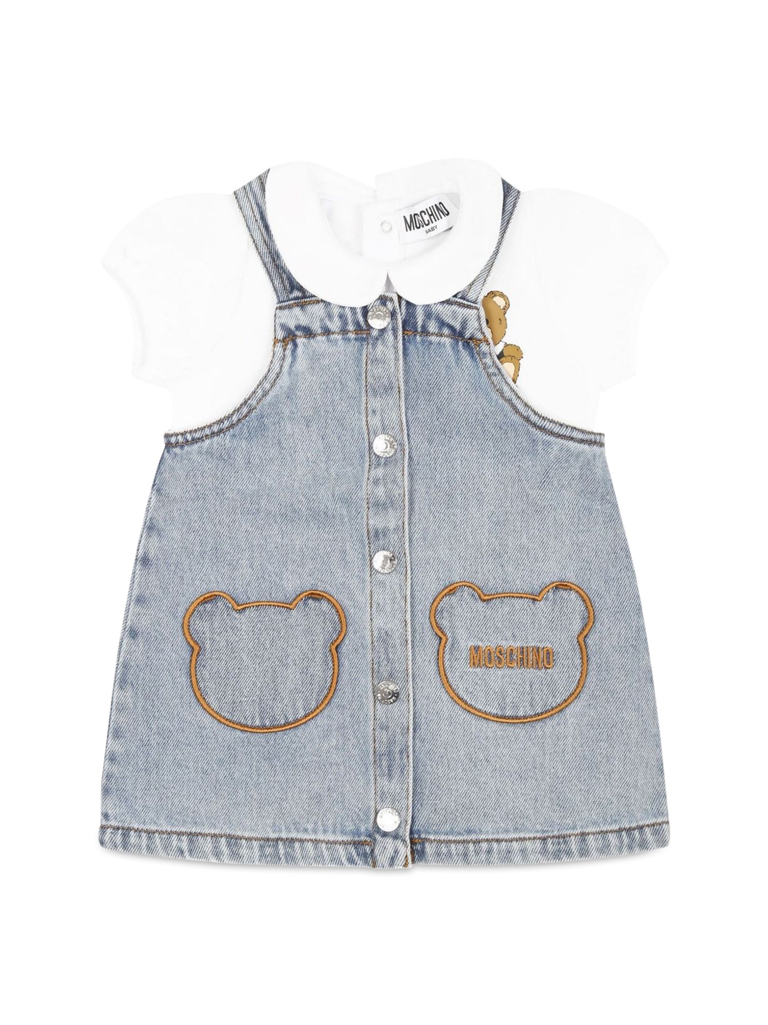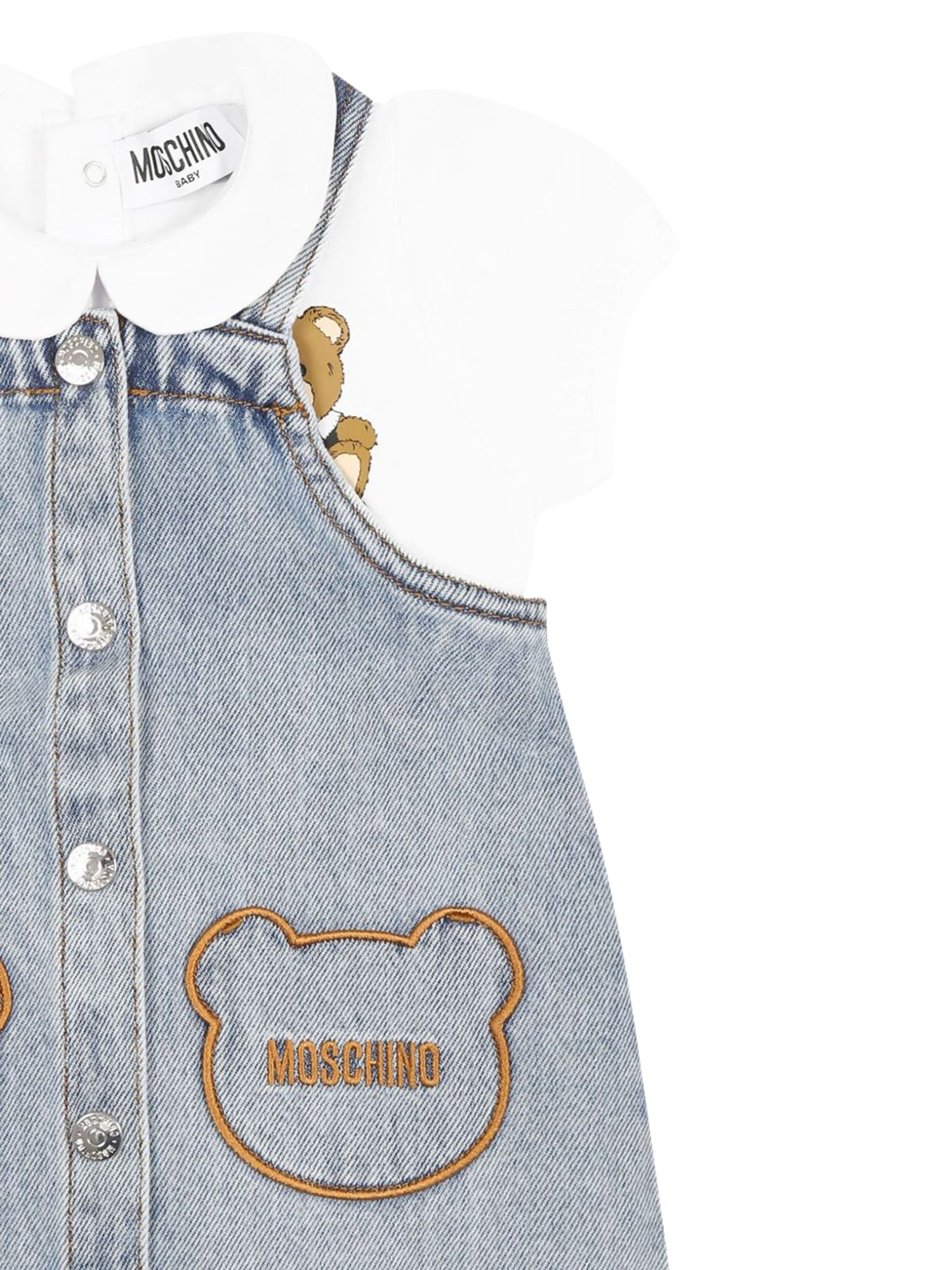 Elevate your little one's wardrobe with the Moschino T-Shirt and Dress Set, a perfect blend of playful style and luxury. This chic ensemble features a soft, breathable cotton T-shirt adorned with the iconic Moschino logo, paired with a stylish dress that boasts a vibrant print and comfortable fit. Ideal for both casual outings and special occasions, this set ensures your child stands out while enjoying all-day comfort. Make a statement with this fashionable duo that embodies the spirit of fun and sophistication.